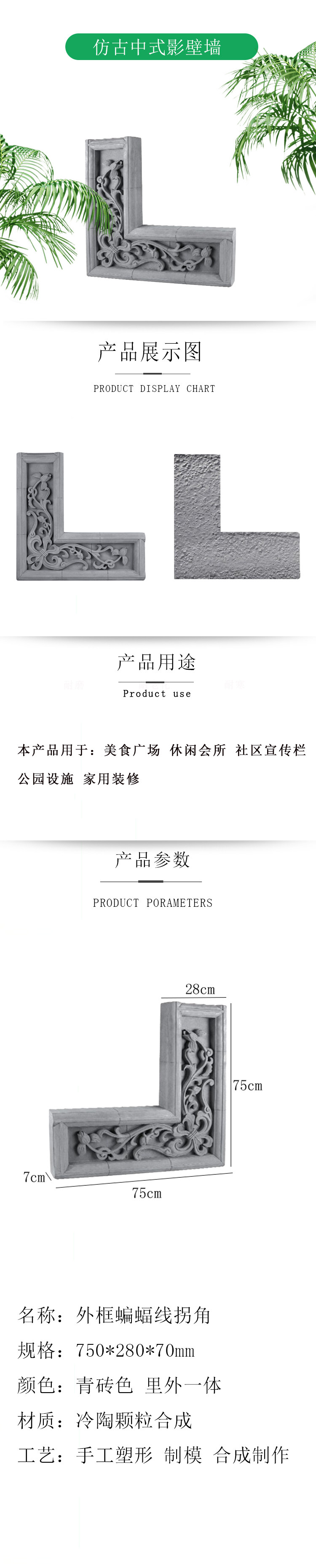 Китайская резьба антикварная китайская стена теневой стена фото стены ноги антикварный зеленый кирпичный кирпич S-X6642 Внешний угол летучей мыши