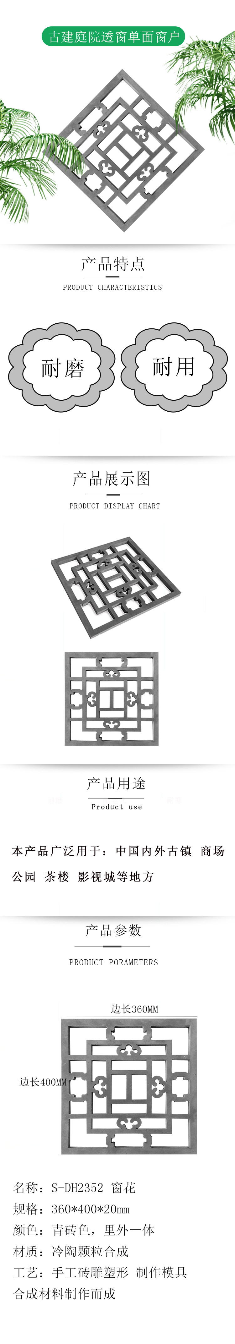 Кирпичная резьба антикварная рельеф 36*40 см. Окна цветочный кулон древний двор -простые окна с однопользованным окном DH2352