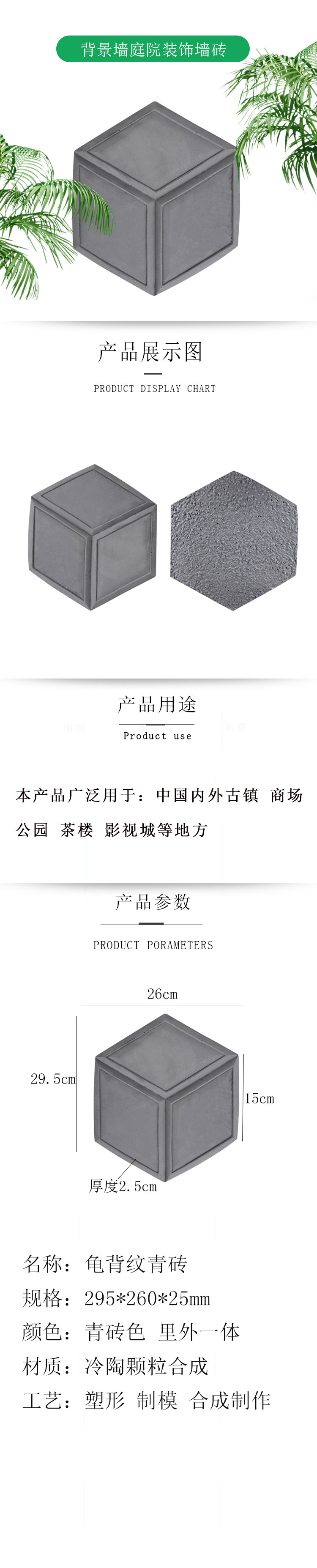 Кирпичная резьба антикварная стена рельефная фона стена двор декоративный стеновой кирпич 26 см. Задняя часть черепаха QD031 Синий кирпич