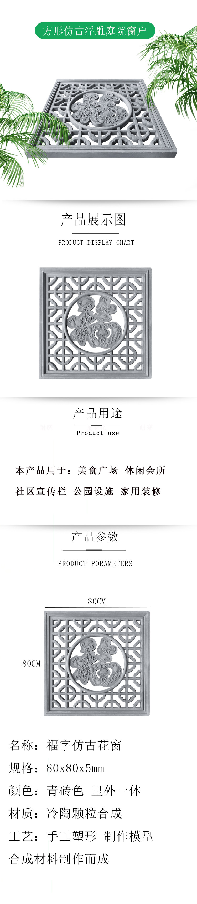 Кирпич -Квадратное имитация Антаготальное окно двора 80*80 см. Древнее односильно