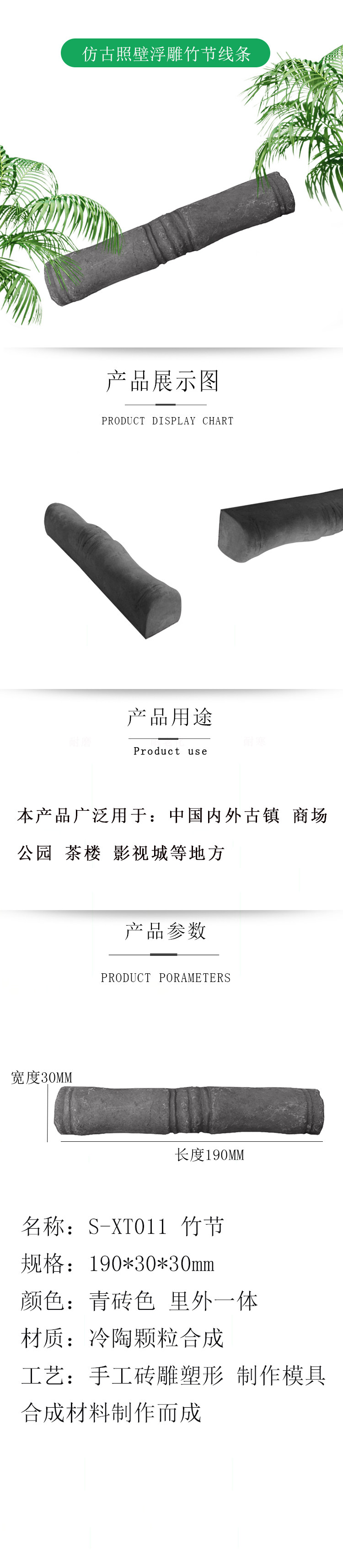 Резьба по кирпичу, украшение древнего двора, строительные материалы, старинный рельеф стены 19*3 см, бамбуковая линия XT011