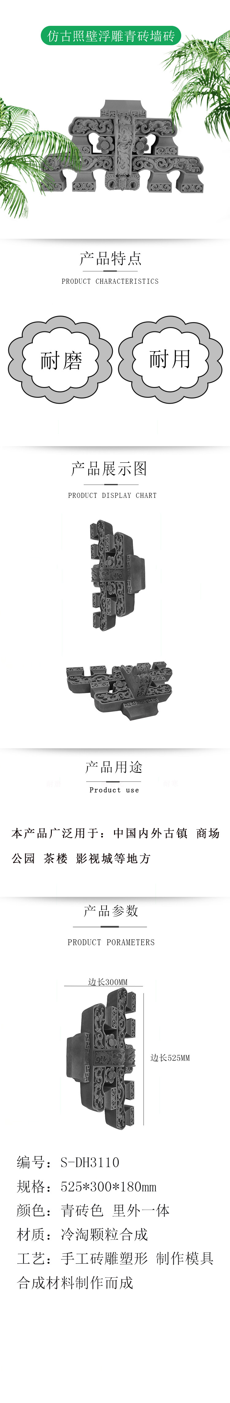 Кирпичная резьба антикварная стена рельеф зеленые кирпичные кирпичные здания 52,5*30*18 см ковша арка DH3110