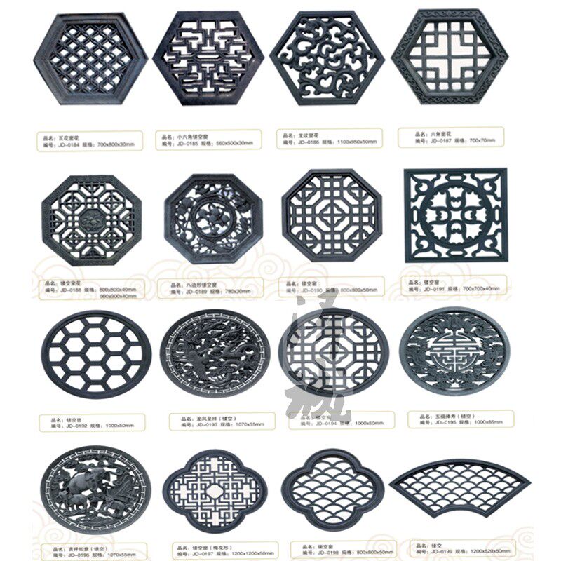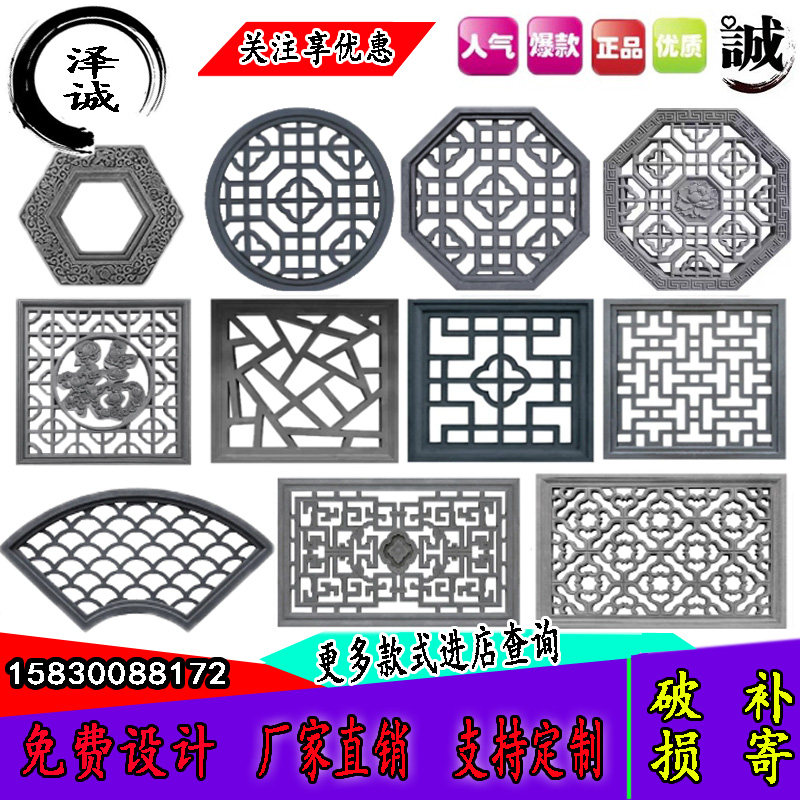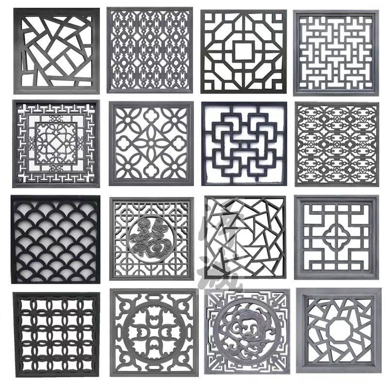 Резьба по кирпичу, старинная резьба по кирпичу, отделка стен внутреннего двора в китайском стиле, древний внутренний двор с полым окном «Фу», старинная цементная оконная решетка