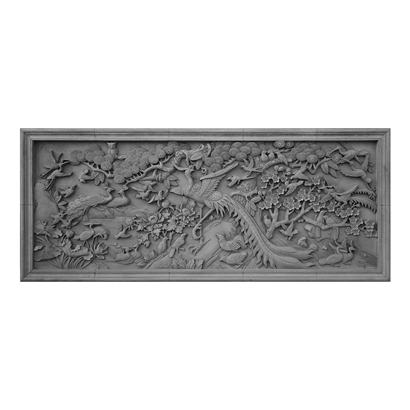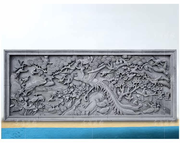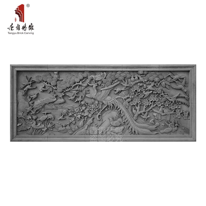Язык Тан кирпит, вырезая сотни птиц, обращенных к древней строительству зеленого кирпичного стены теневой, большое облегчение, большое облегчение, стена среднего стиля
