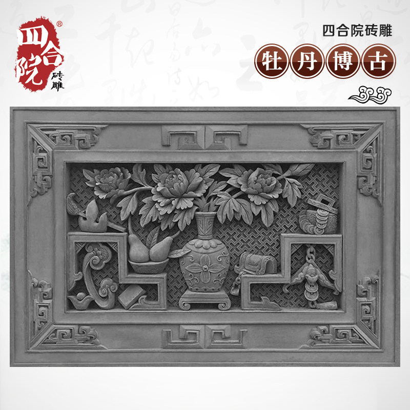 Siheyuan Brick Caring Caring Antique Wall Relief Foine Wall стена зеленый кирпичный кирпич древнее здание 90*60 см Peony DH862 резные цветы