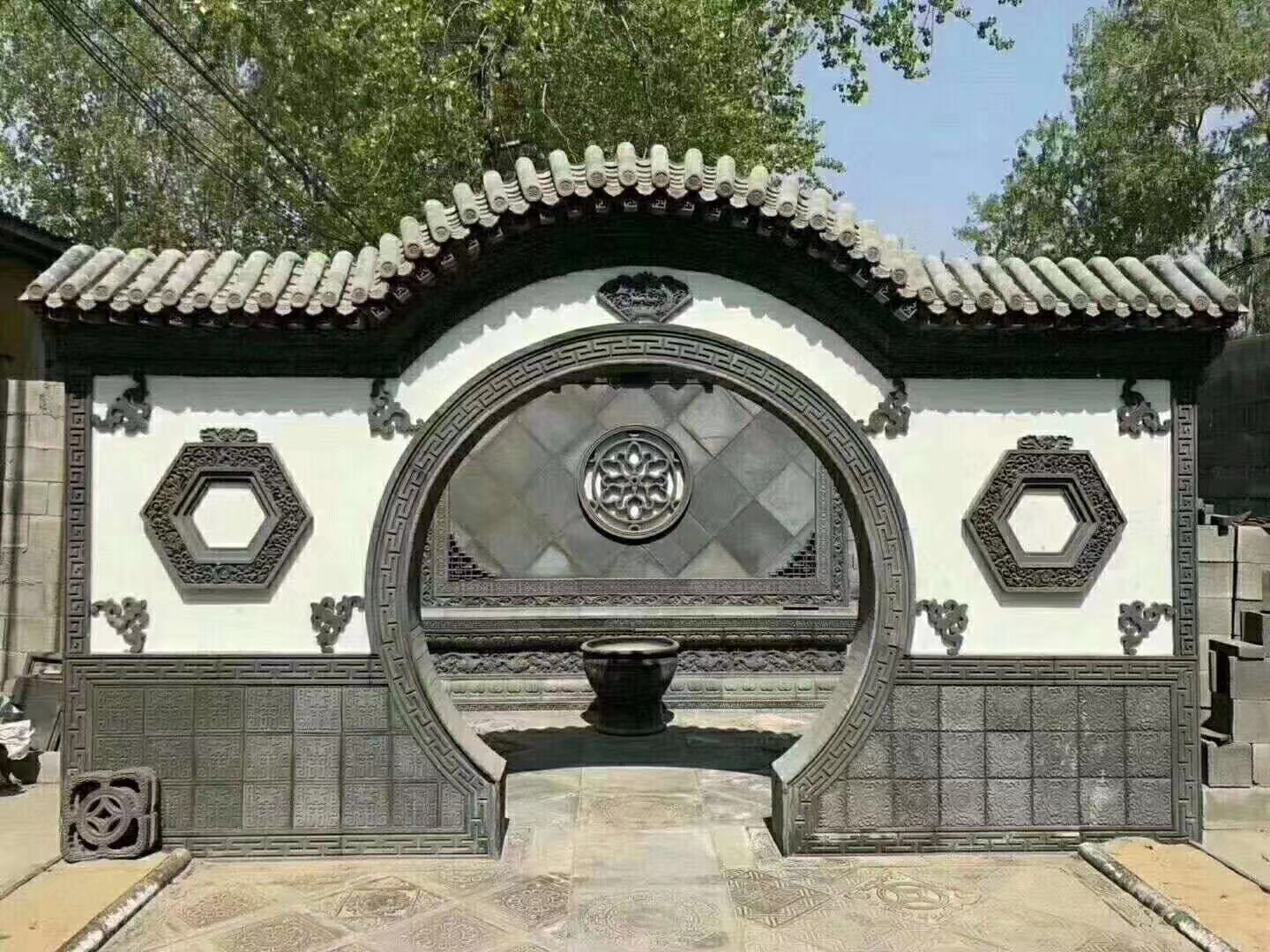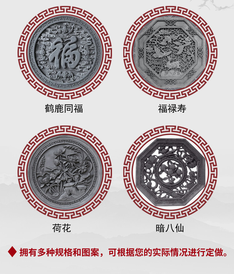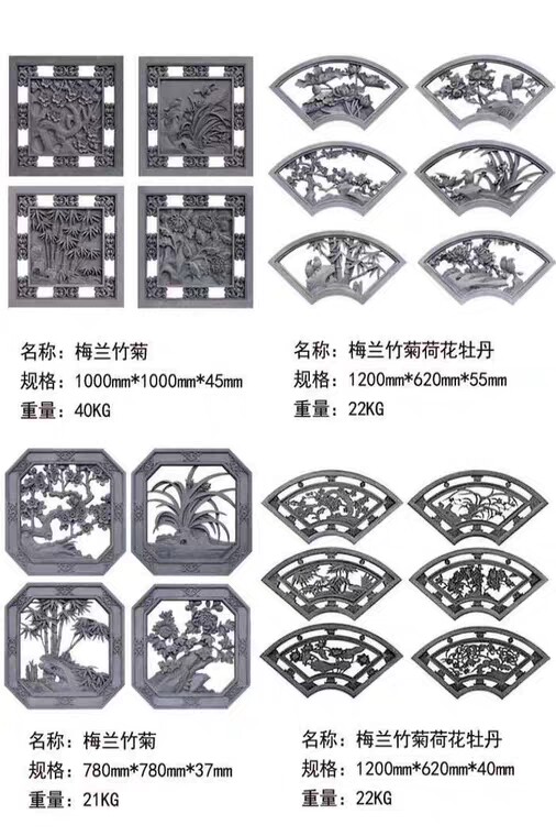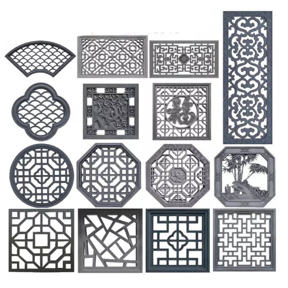 Резьба по полому кирпичу, китайский веерообразный квадратный круг, восьмиугольный экран, рельеф стены, старинный забор, оконная решетка, цемент, цветок, украшение окна