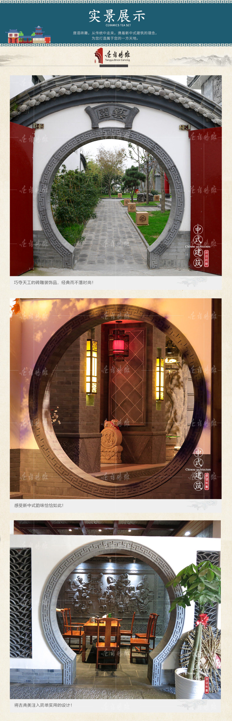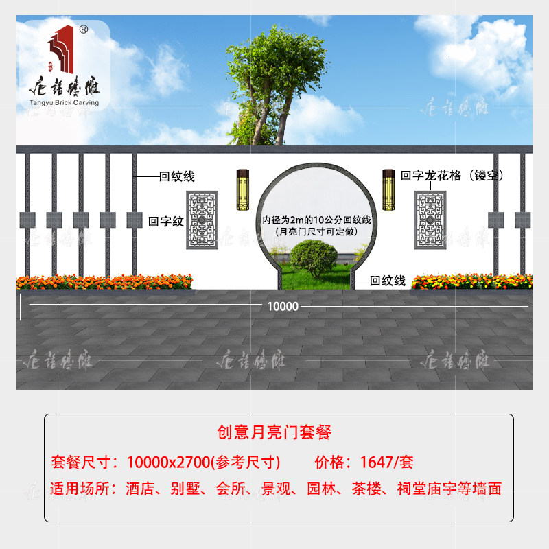 唐语 Кирпичная резьба китайская в стиле теневой стены иллюминация арочная дуга дуга луна дверь Хуай Древние здания здания Стены