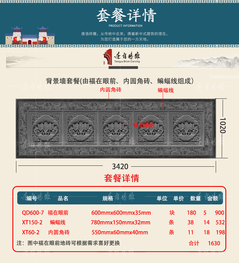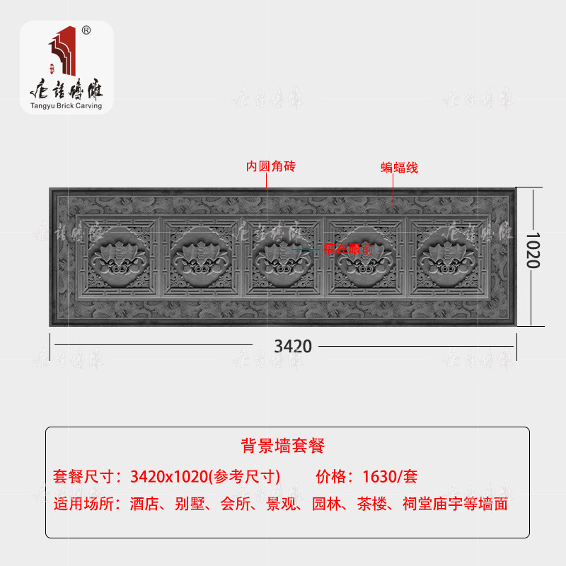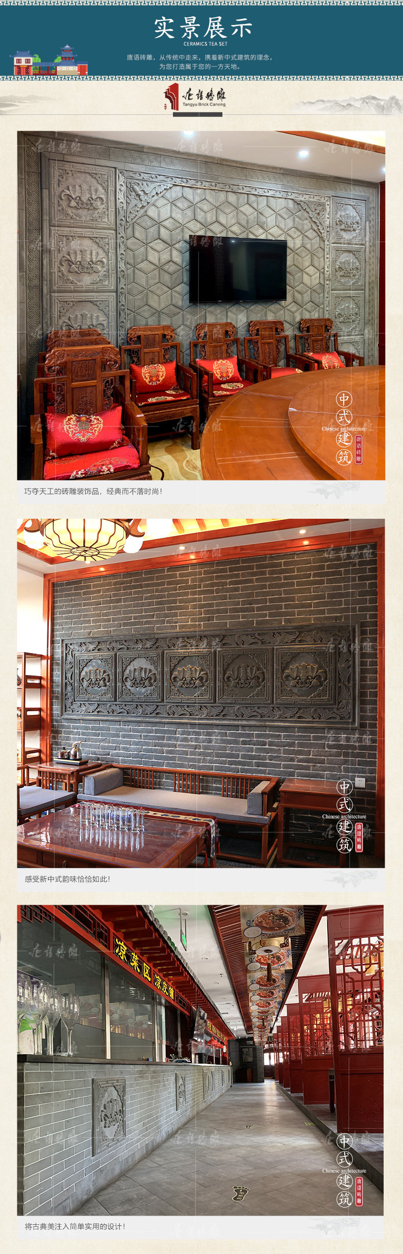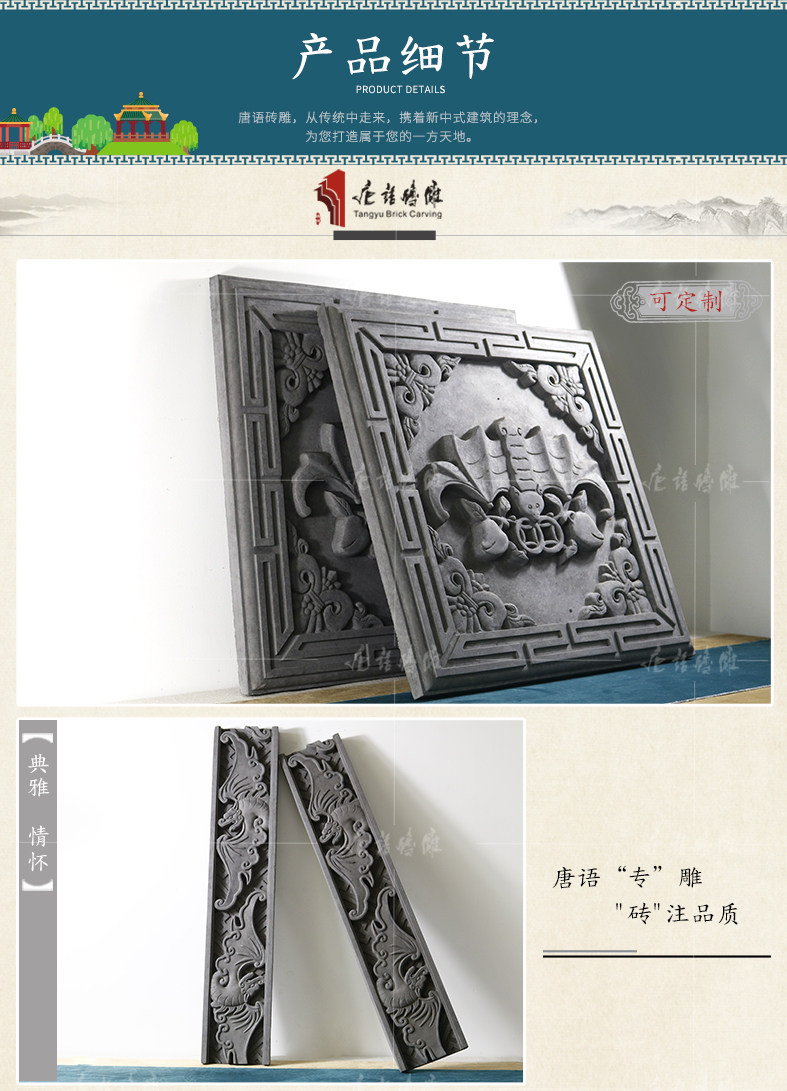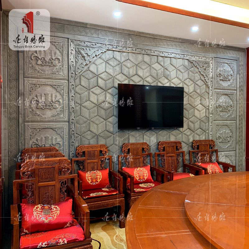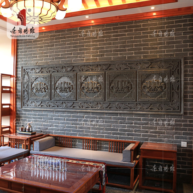 唐语 Кирпичная резьба антикварная кирпичная кирпичная китайская фоновая настенная чайная комната