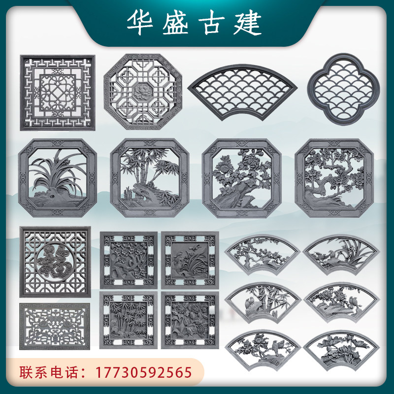 Huasheng Brick Caring Antique китайская стиль двор теневой стена Полово цветок вентилятор в форме сливы бамбук хризантемам -цементный окно