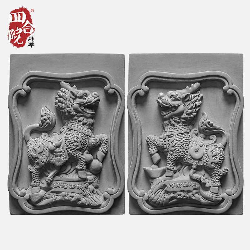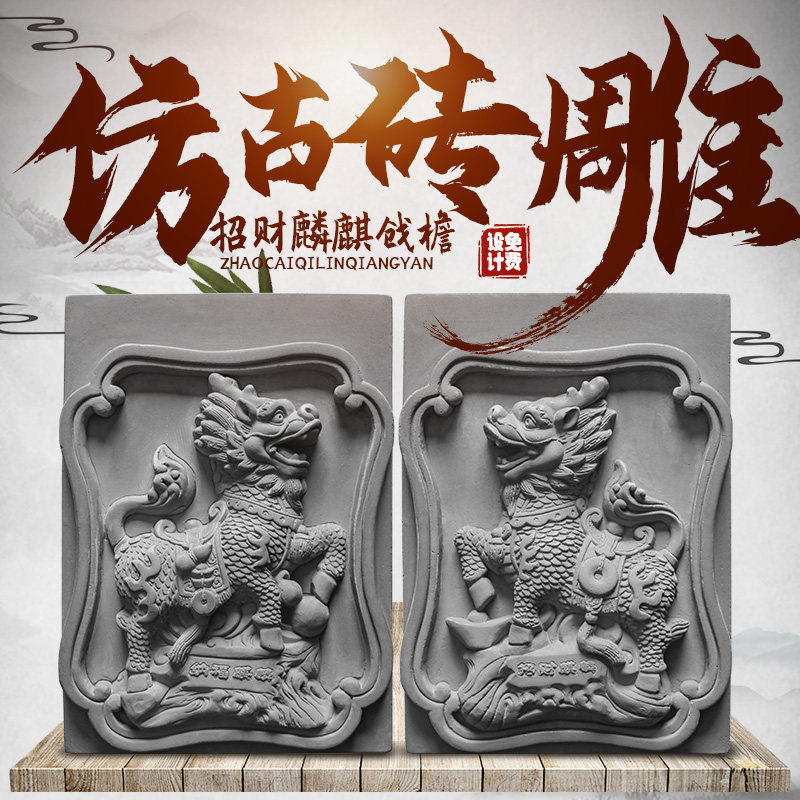 Античный Кирин Ронгван Рубин Фортуна Хаус Кирпич Резной китайский внутренний двор ворота ворота ворота украшения двора