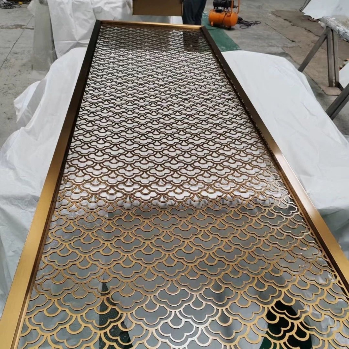 Перегородка из нержавеющей стали, алюминиевый рельеф для гостиной, отдел продаж, решетка, украшение, полый алюминиевый рельеф, инженерная настройка отеля