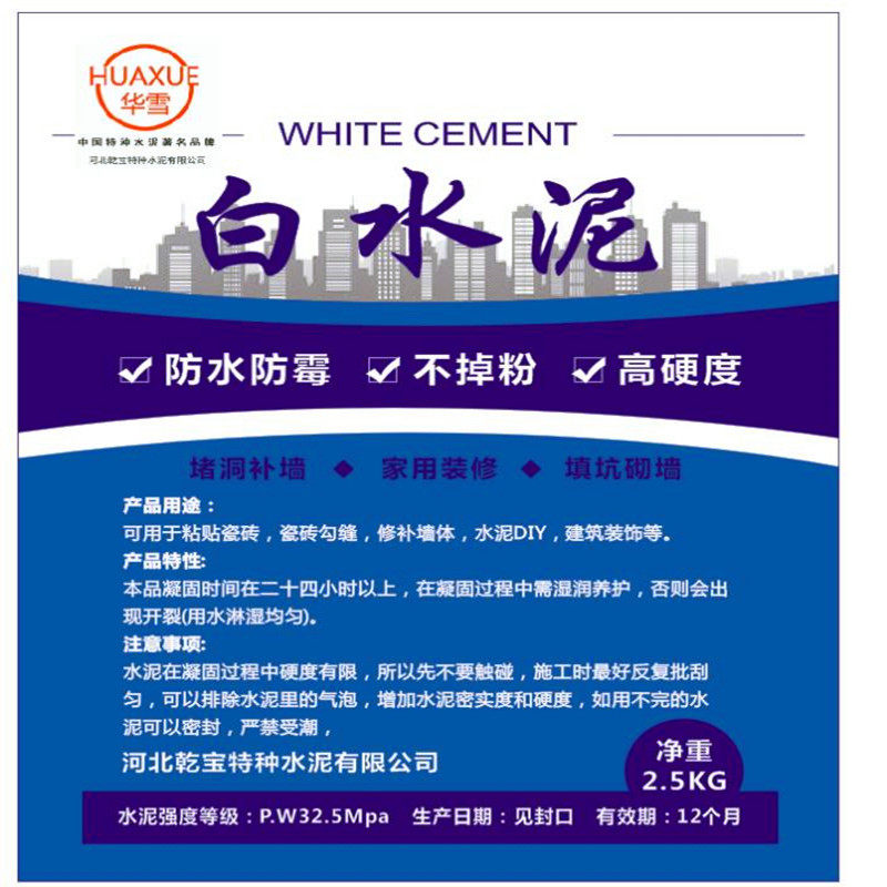 Huaxue PW32.5 Здание Бело -цементное туалет внутренние и внешние стены во внутренней и наружной стенах белых плиток в белых плитках заполняют стенные отверстия и водонепроницаем