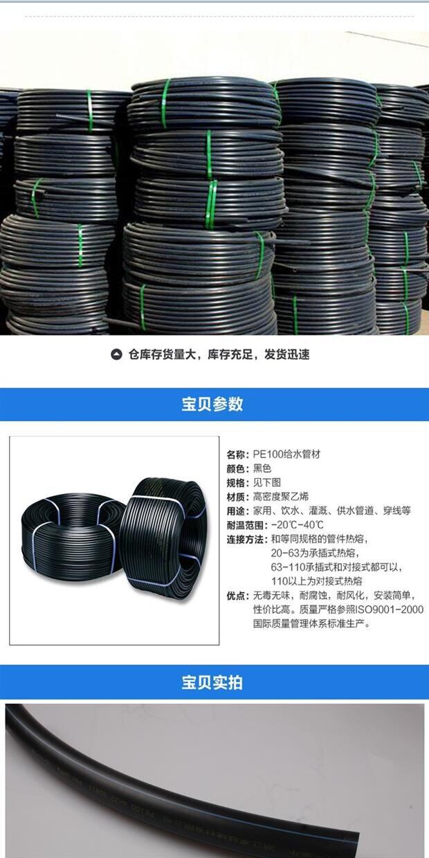 Tianyi Taurus PE Water Pipe Pipe Pe Disk Tipe Pe Tap Water Pipe Pe Pemepling Tipe Accessories 20-32