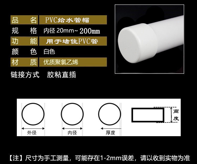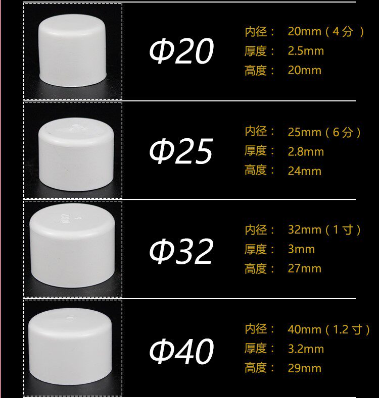 | Цвет: | 20 -миллиметровая крышка для водной трубы, Крышка водопроводной трубы 25 мм, 32 -миллиметровая крышка для водопроводной трубы, 40 -миллиметровая крышка для водной трубы, 50 мм, давая крышку водопроводной трубы, 63 -мм крышка для водопроводной трубы, 75 -миллиметровая крышка для водопроводной трубы, 90 -миллиметровая крышка для водопроводной трубы, 110mm, 160mm, 200mm |