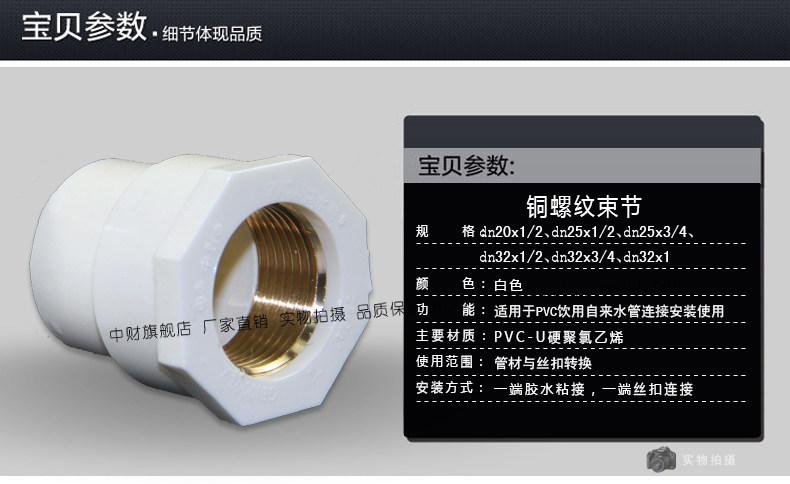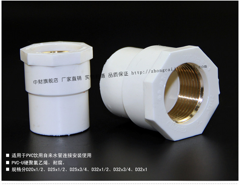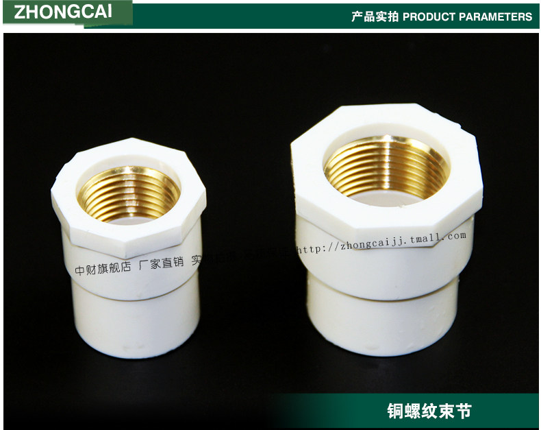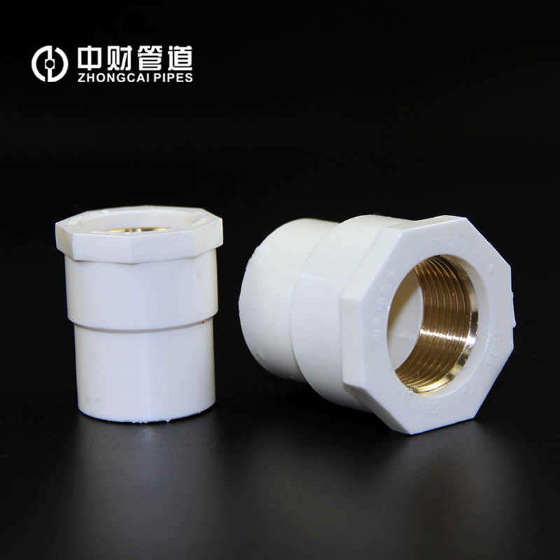 中财 Трубопровод PVCU пить труба труба труба Учебная труба Учебная медная медная медная струя внутренняя шелковая резьба прямо через соединение