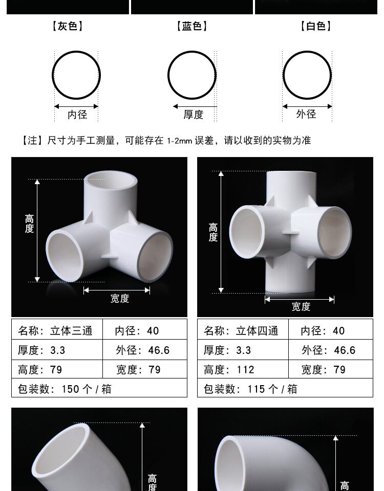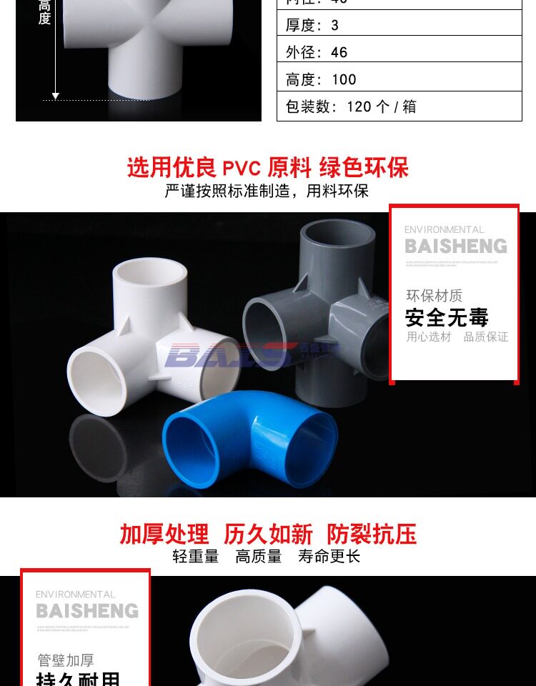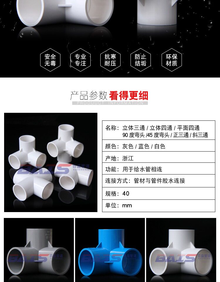 Трехмерные аксессуары из ПВХ, тройник, 45 градусов, 90 градусов, 40