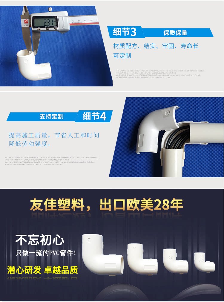 ПВХ электрические аксессуары линии линии трубы Puretic Установка и электрическая сплит -полоса -полоса с тремя соединительными коленами хорошо воспринята как прилив