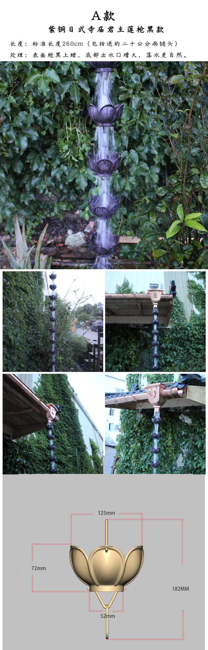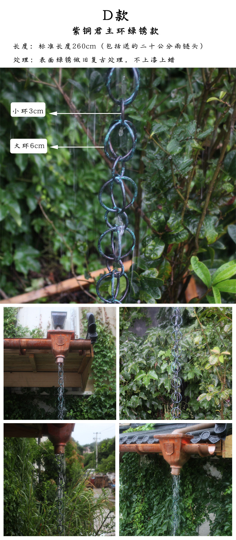 Wafang Outdoor Garden Villa tiaolou Pure Медная вода вода для дождевой цепь храм живописной цепь северной северной гм дренажный колокол