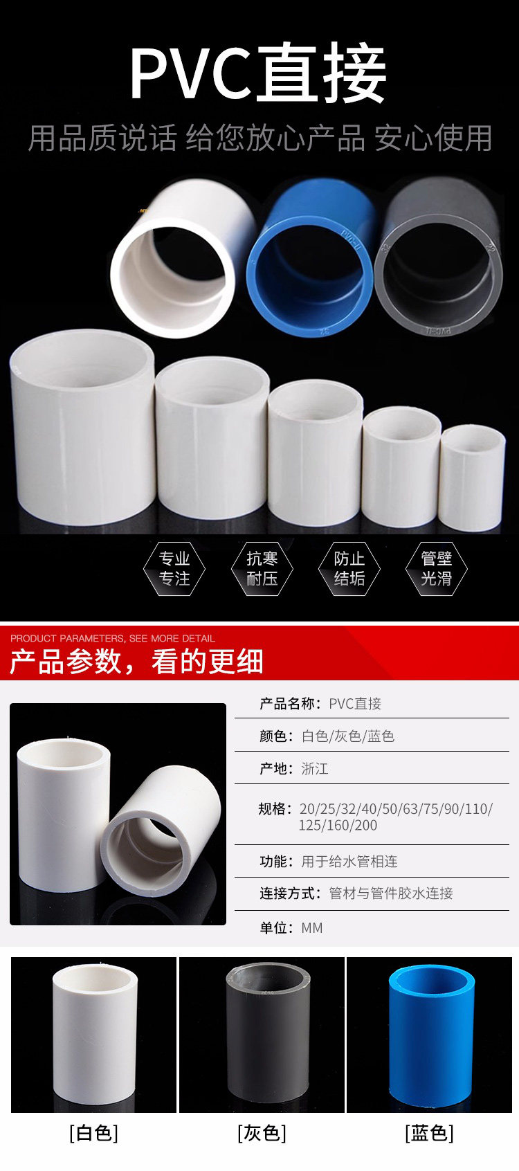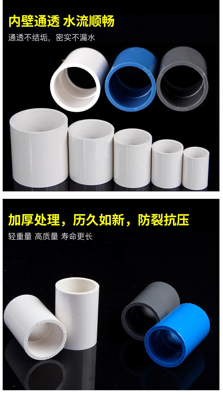 ПВК водопроводная труба Прямая трубная фитинга Аксессуары соединители подключены непосредственно к водопроводной трубе.