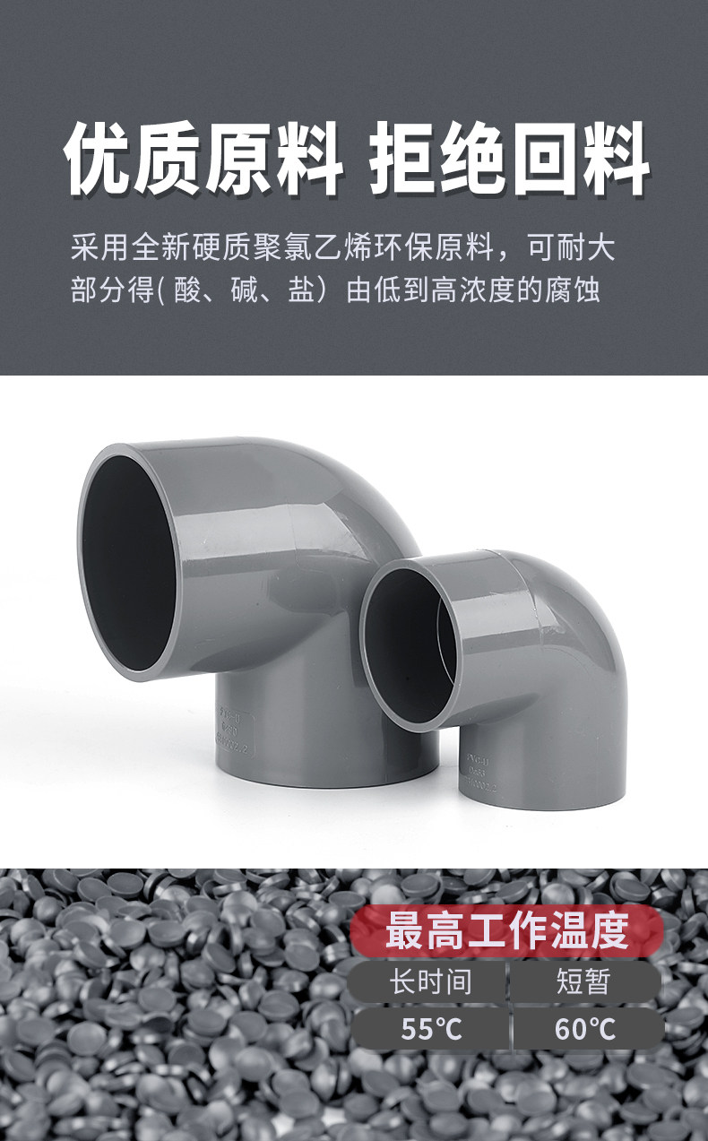 ПВХ локоть водяной трубы UPVC Подавление водопроводных труб Аксессуары 90 градусов вверх и вниз по воде, правый изогнутый изгиб сгибающий соединение дренаж 63 32