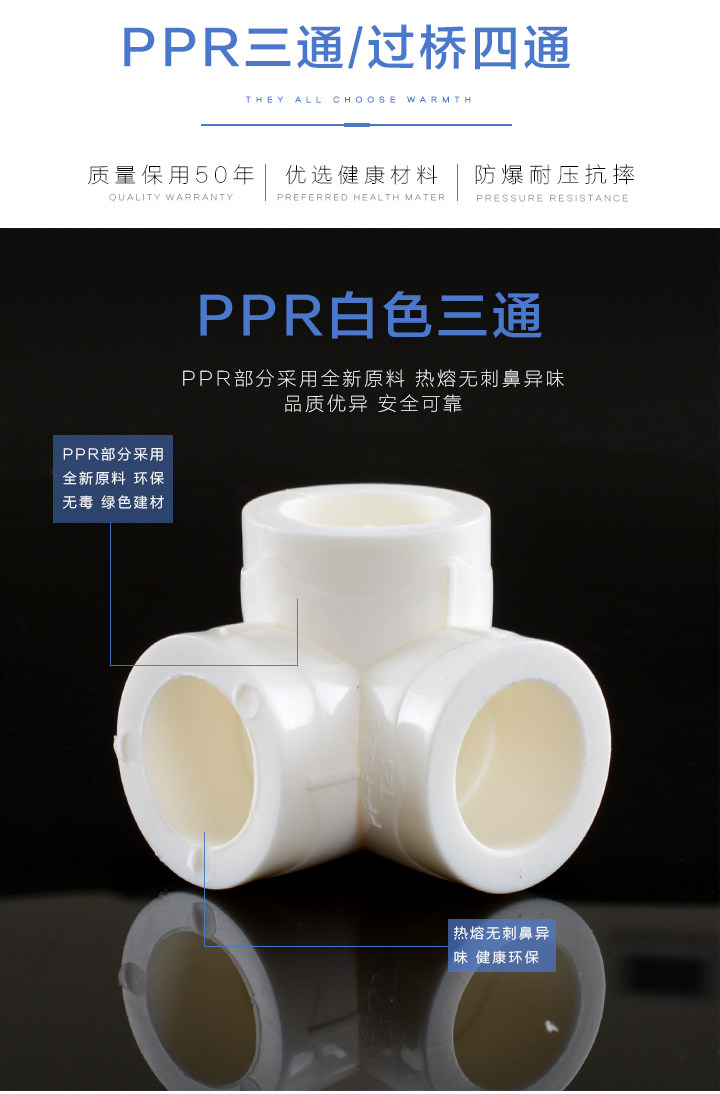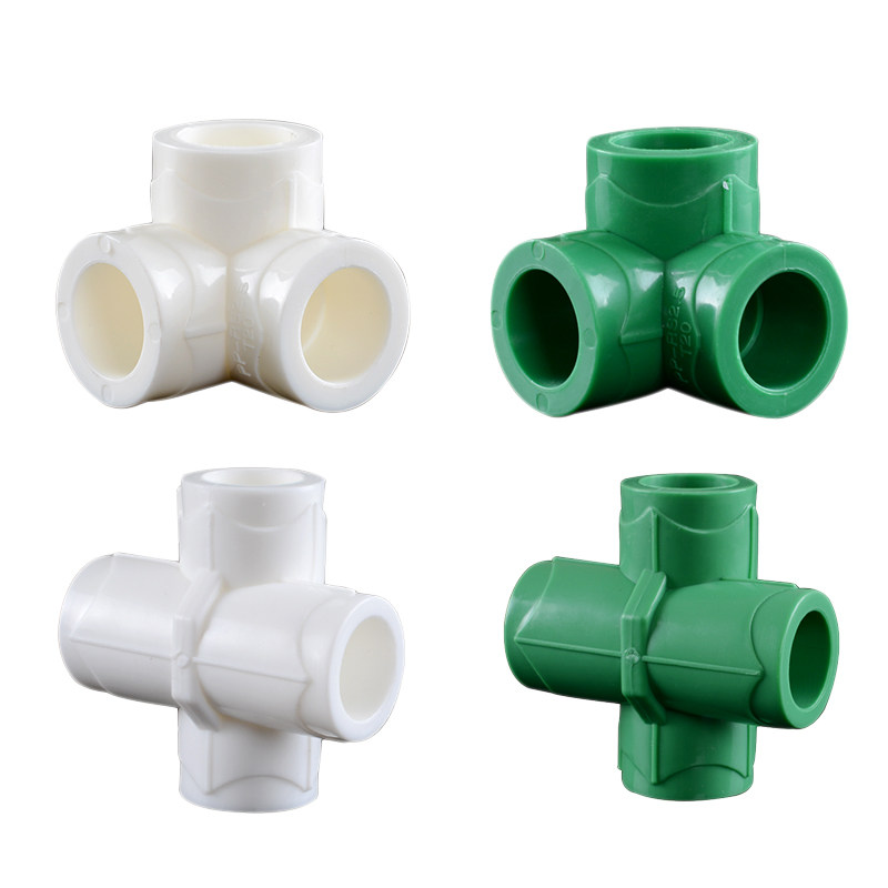 PPR Трехэффективные пластиковые угловые угловые угловые угла из трехмерного правого уголка Трехэтажный перекрестный мост, четырехвальные аксессуары для водопроводов PPR PPR