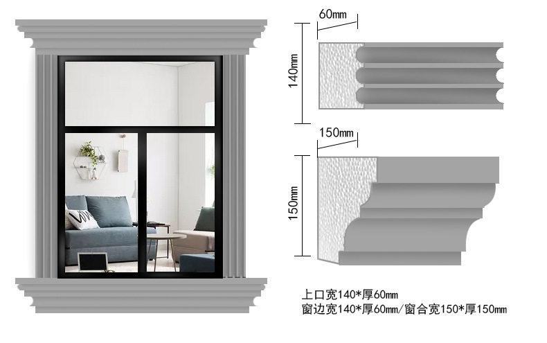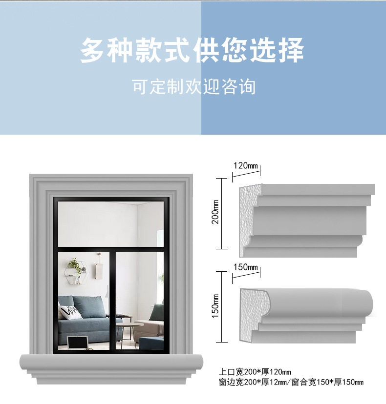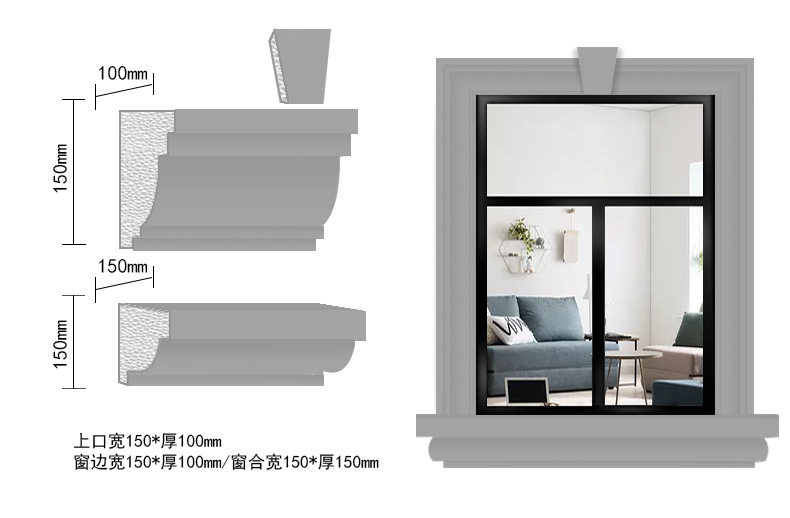 Li Chan EPS Bubble Line Foam Ceramic Window Case European -стиль вилла Внешняя стена украшения