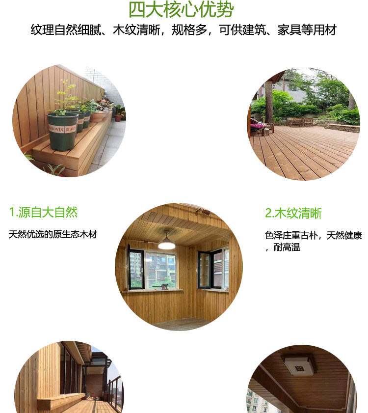 Аутентичная камфора сосна глубоко карбонизированные деревянные наружные анти -коррозионные напольные окна в закрытых окнах и поражают 19*90 мм