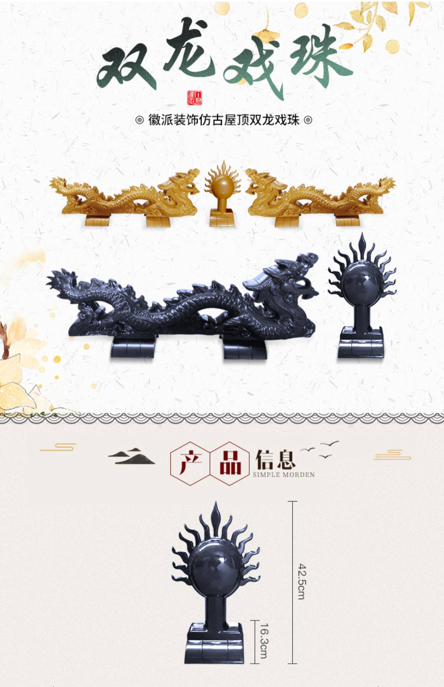 Смоловая плитка после старого дома внутреннего дома верхний луч двойной дракон драмы Драма для бусинки Декоративный хребет на крыше дракона