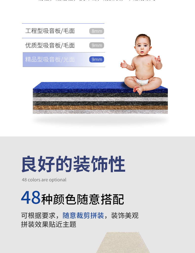 Три -летняя старая магазин девять цветных полиэфирных волокно -саунд -поглощающая доска KTV Детский сад для фортепианного комнаты видео Комната настенный