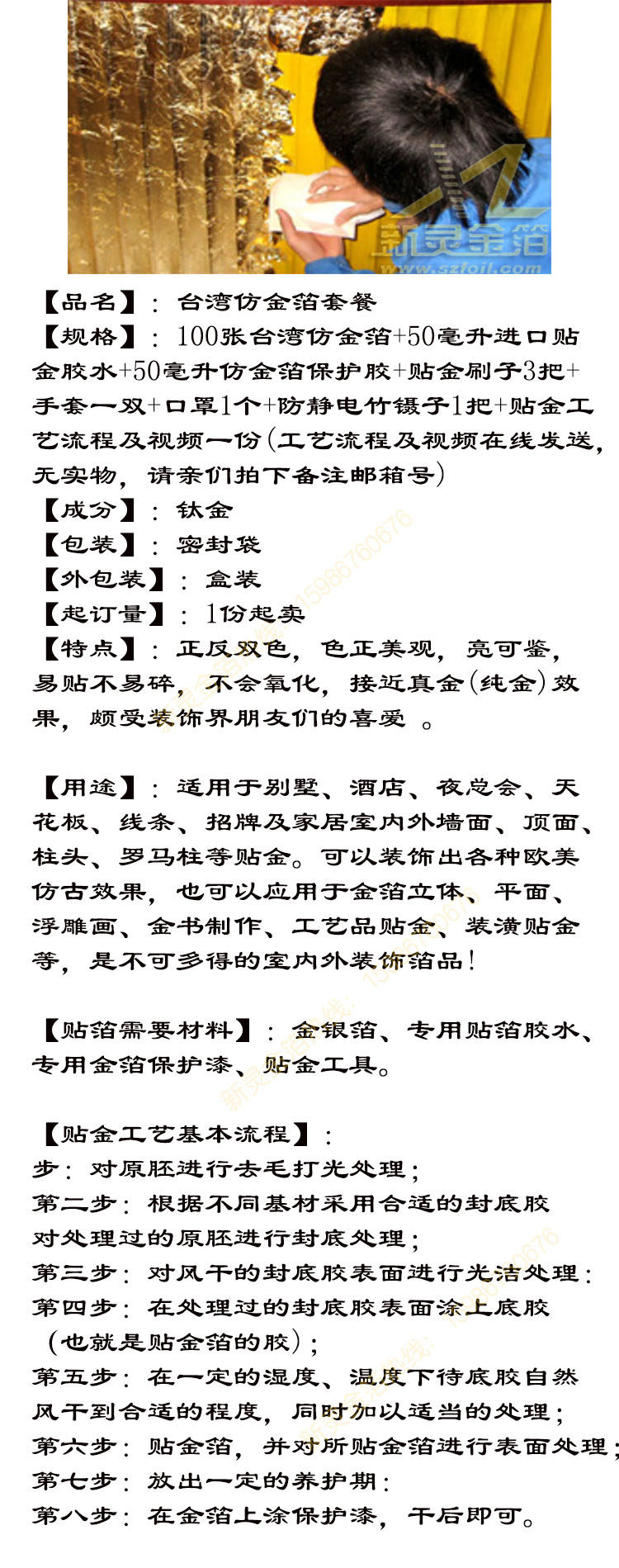 Золотая фольга имитация золотой фольга+золотой клей+защита краска+инструмент для входа золота+золотое учебное пособие только 88 Юань бесплатная доставка