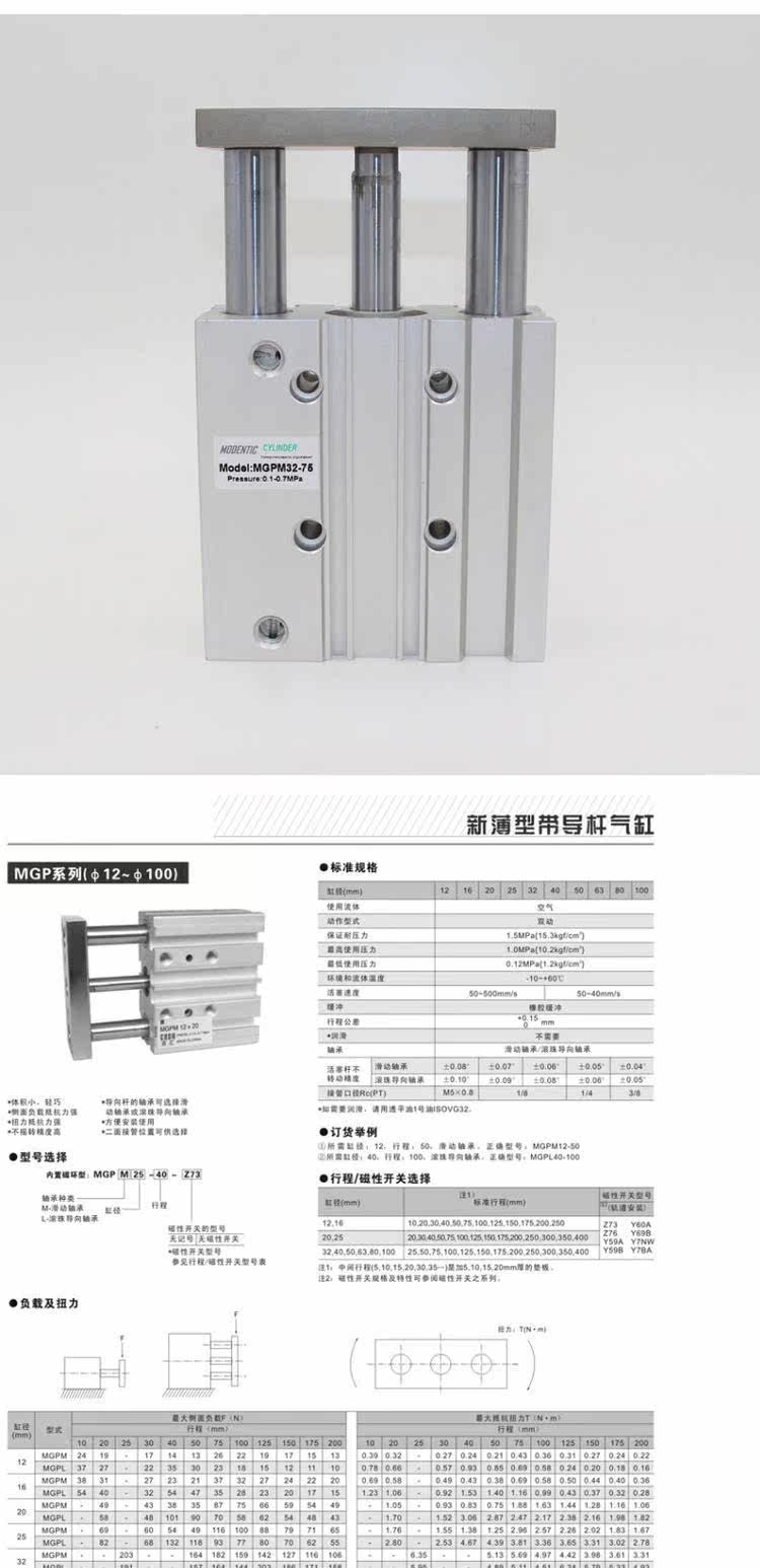 Трех осевой цилиндр TCL/MGPL40-10/20/30/70/80/100/120/150/175/200-Z-S