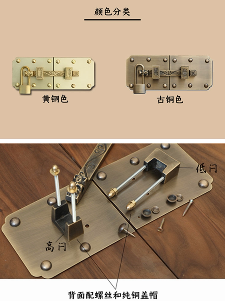 Китайская антикварная дверная защелка из чистой меди, двор, наружная дверь, накладная деревянная дверная защелка, ретро архитектурные медные аксессуары