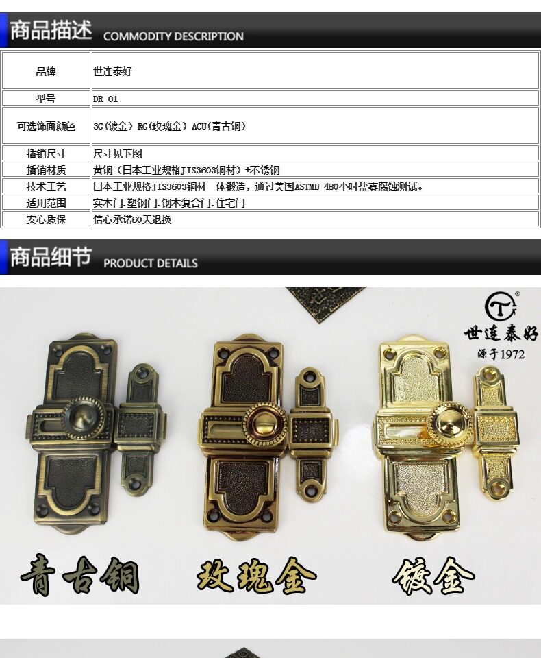 World Liantai Hao Moce Lock Bock Bronze Pluming Sales All -Copper AntheTheft European Portal Portal Portal Plugs DR 01