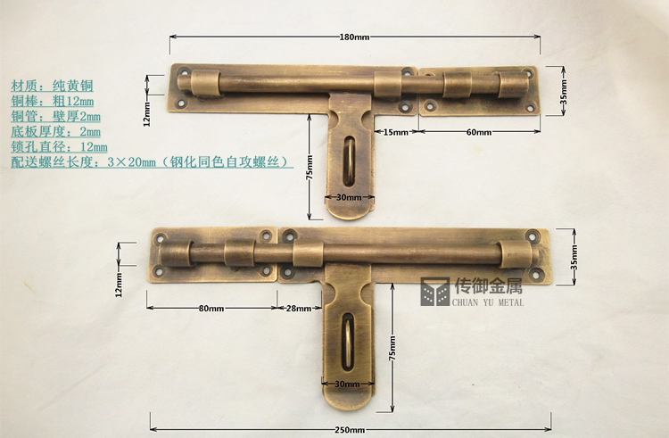 Китайский стиль Mingguang Древняя чистая медная штепсель -В деревянной двери полная медная дверь эмболия на открытом воздухе сад сад ретро бронзовая дверь 闩