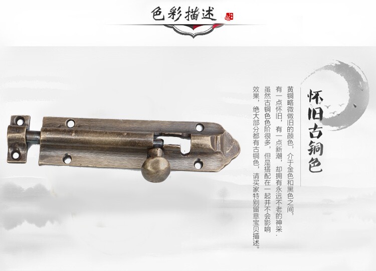 Linglong китайский антикварный чистый медный старый модный рынок болт чистый медный лить интенсивные дверные пряжки