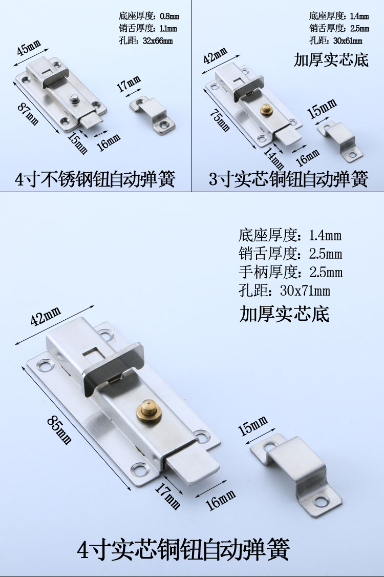 | Цвет: | 2-дюймовая ручная защелка с двойной головкой, 3-дюймовая ручная защелка с двойной головкой, 4-дюймовая ручная защелка с двойной головкой, 3-дюймовая кнопка из нержавеющей стали, 4-дюймовая кнопка из нержавеющей стали, 3-дюймовая медная кнопка, 4-дюймовая медная кнопка, 3-дюймовая утолщенная медная кнопка сплошной ядра., 4-дюймовая утолщенная медная кнопка с твердым ядром. |