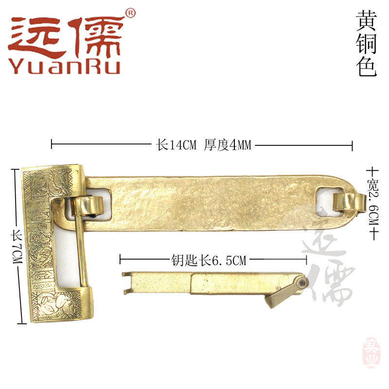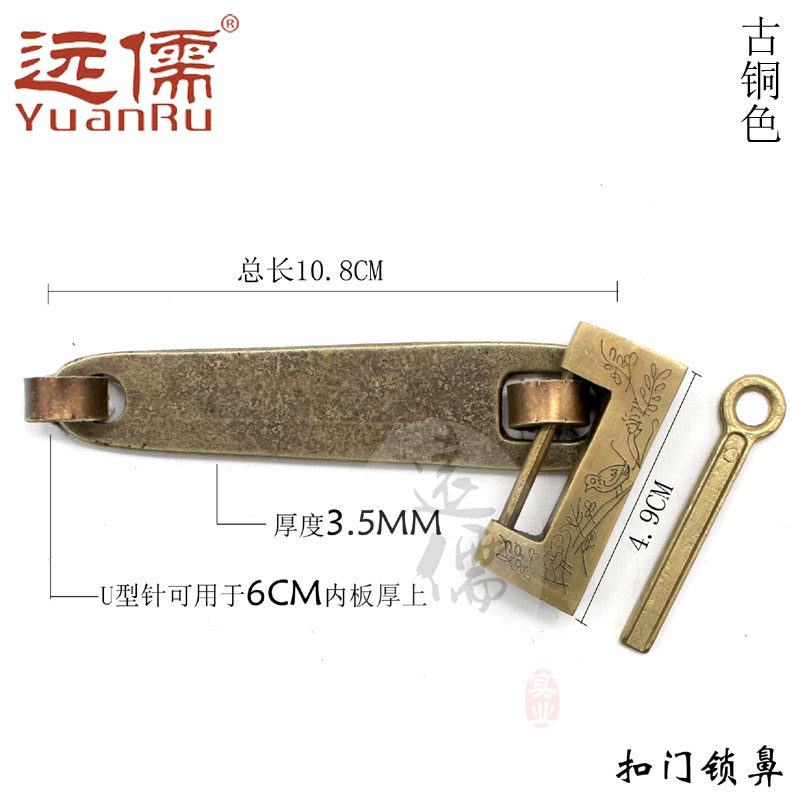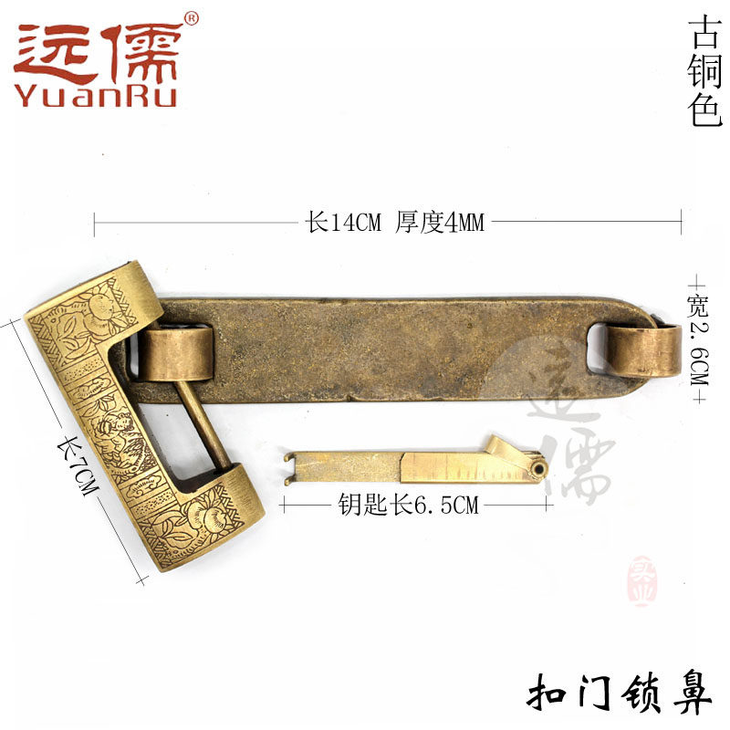 远儒 Медные режущие антикварные китайские бронзовые и цинковые кепки для ворот с толстым замком.