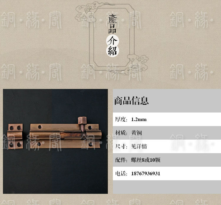 Tongyuan Pavilion!Расширение!Античтная вставка китайского стиля и маркетинг чистой медной двери, загущенная ширина и ширина деревянной двери -в дверной штекер
