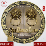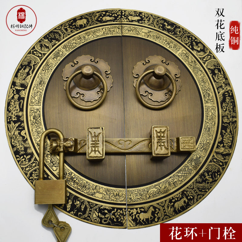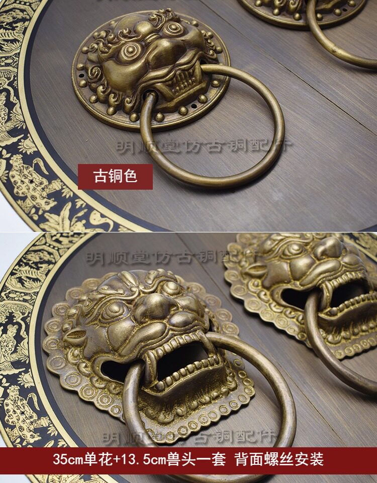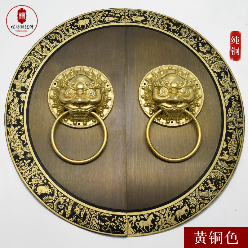 Китайская антикварная пара круглая дверная круглая чистая медная дверная дверь зверя зверя, медные, медные, медные вставки дверной болт