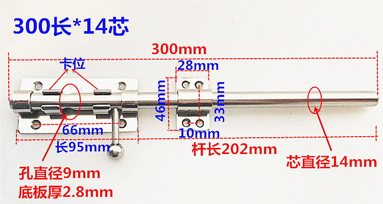 Zheng 304 из нержавеющей стали жирной защелки с винтовым отверстием 6-дюймовый и удлиняемый 1,2 метра наповянный дверной замок болт