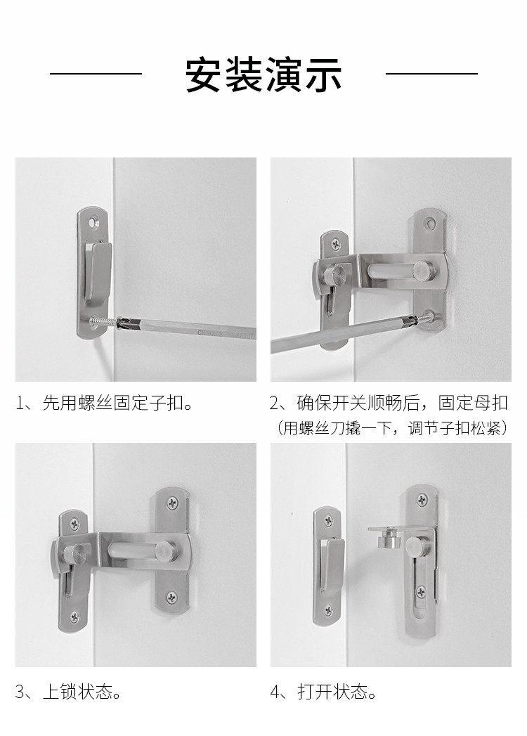 | Цвет: | 304 нержавеющая сталь [маленькая] 90 градусов дверной замок, 304 нержавеющая сталь [большая] 90 градусов дверной замок |