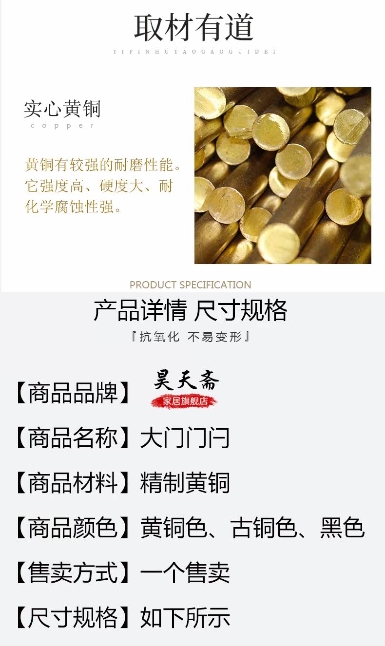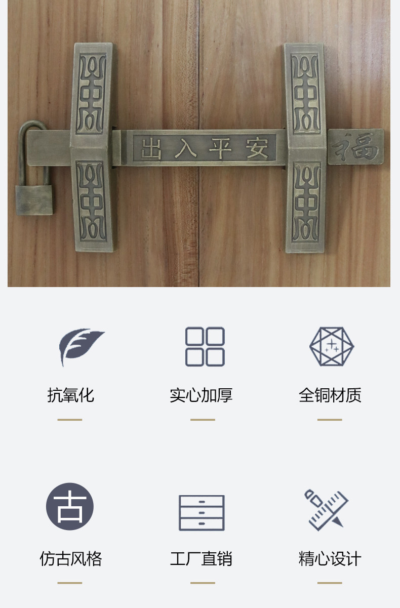 昊天斋 Бронзовая дверная эмболия Античная большая деревянная дверная медная штепсель -Железные двери Металлические дверь китайский стиль -в стиле двора двора Граска дверного двора