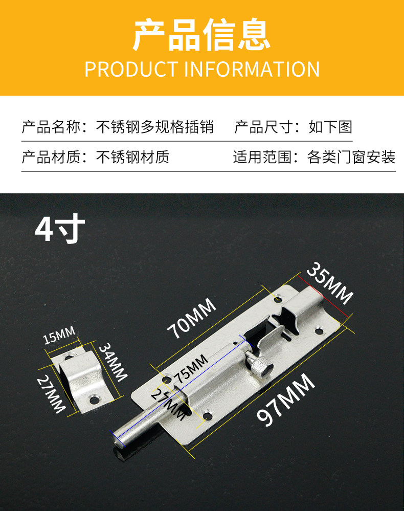 Штечка из нержавеющей стали -в дверной болтовой пряжек и окнах