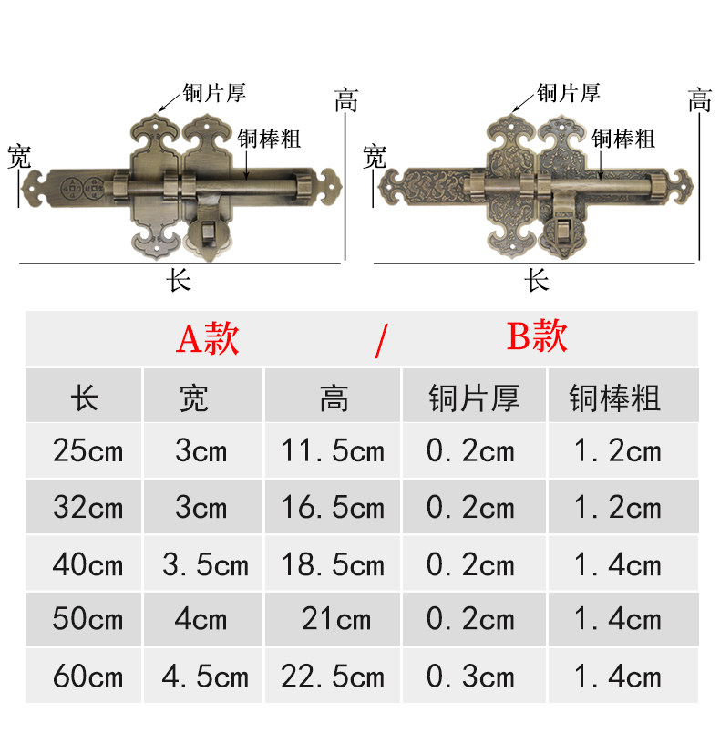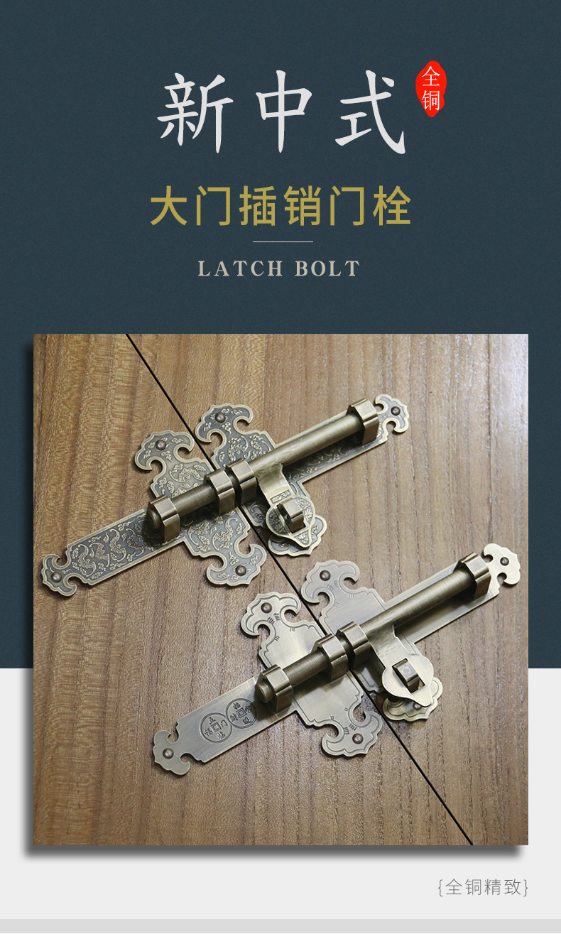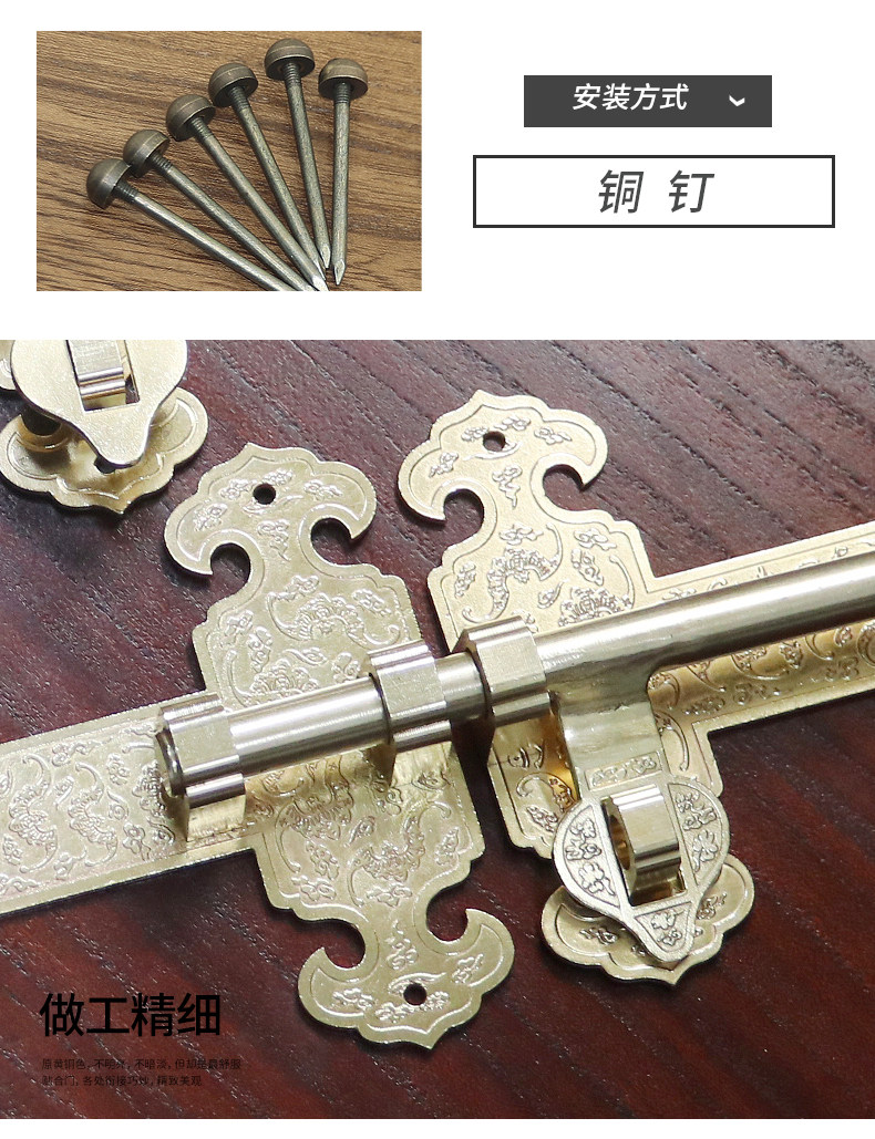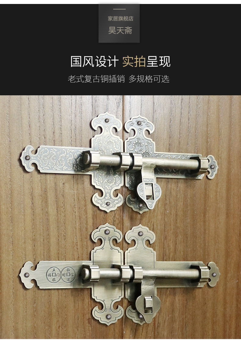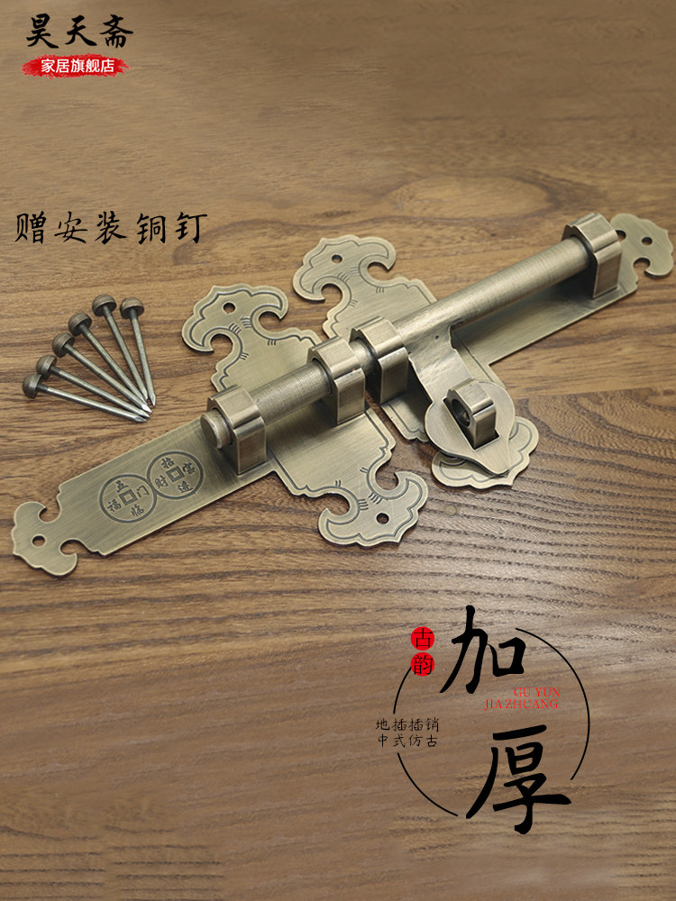 昊天斋 Античный китайский стиль чистый медный штепсель -дверь и окна, двери и окна, садовый сад деревянный дверной замок Старая модная дверная эмболия
