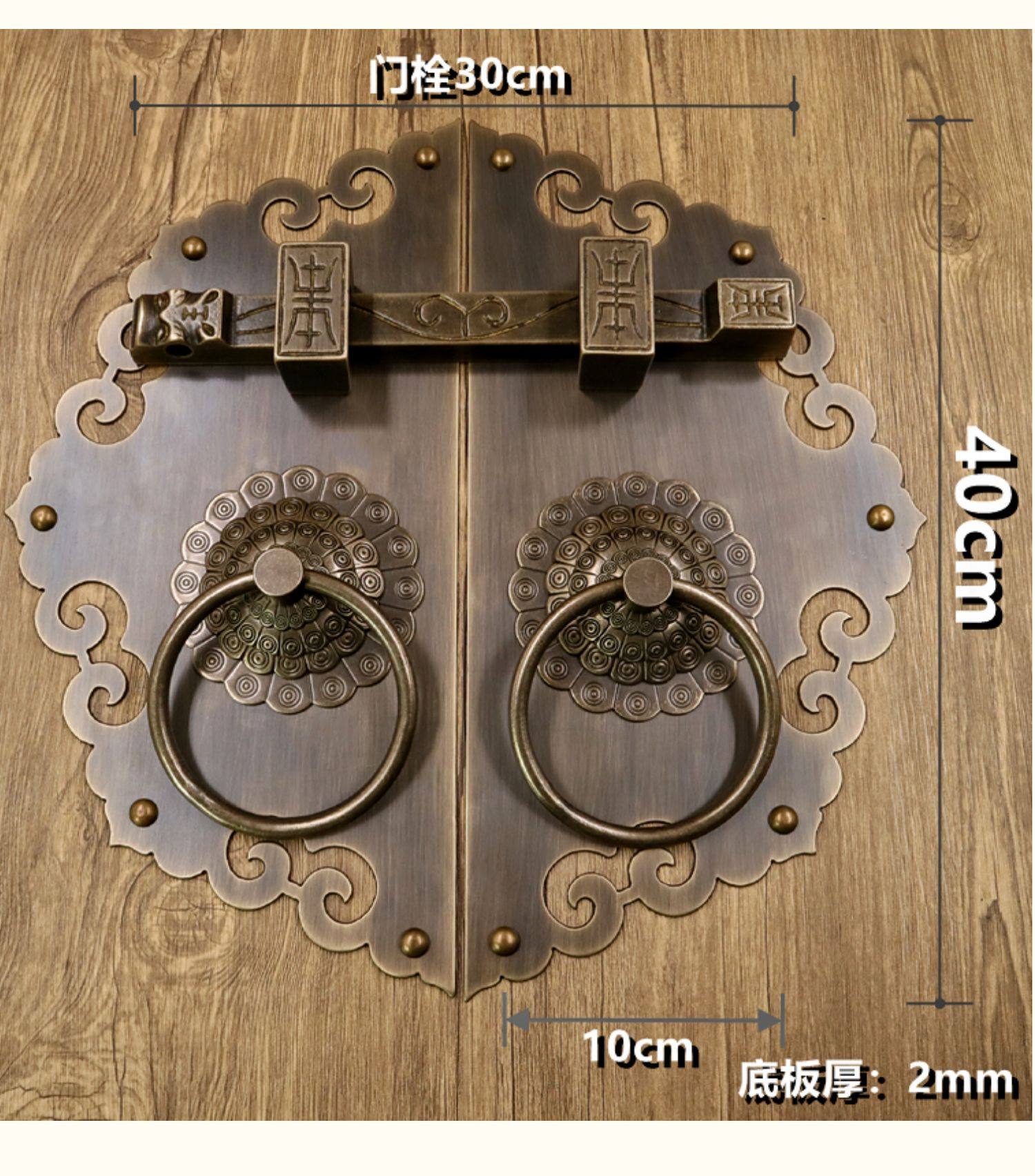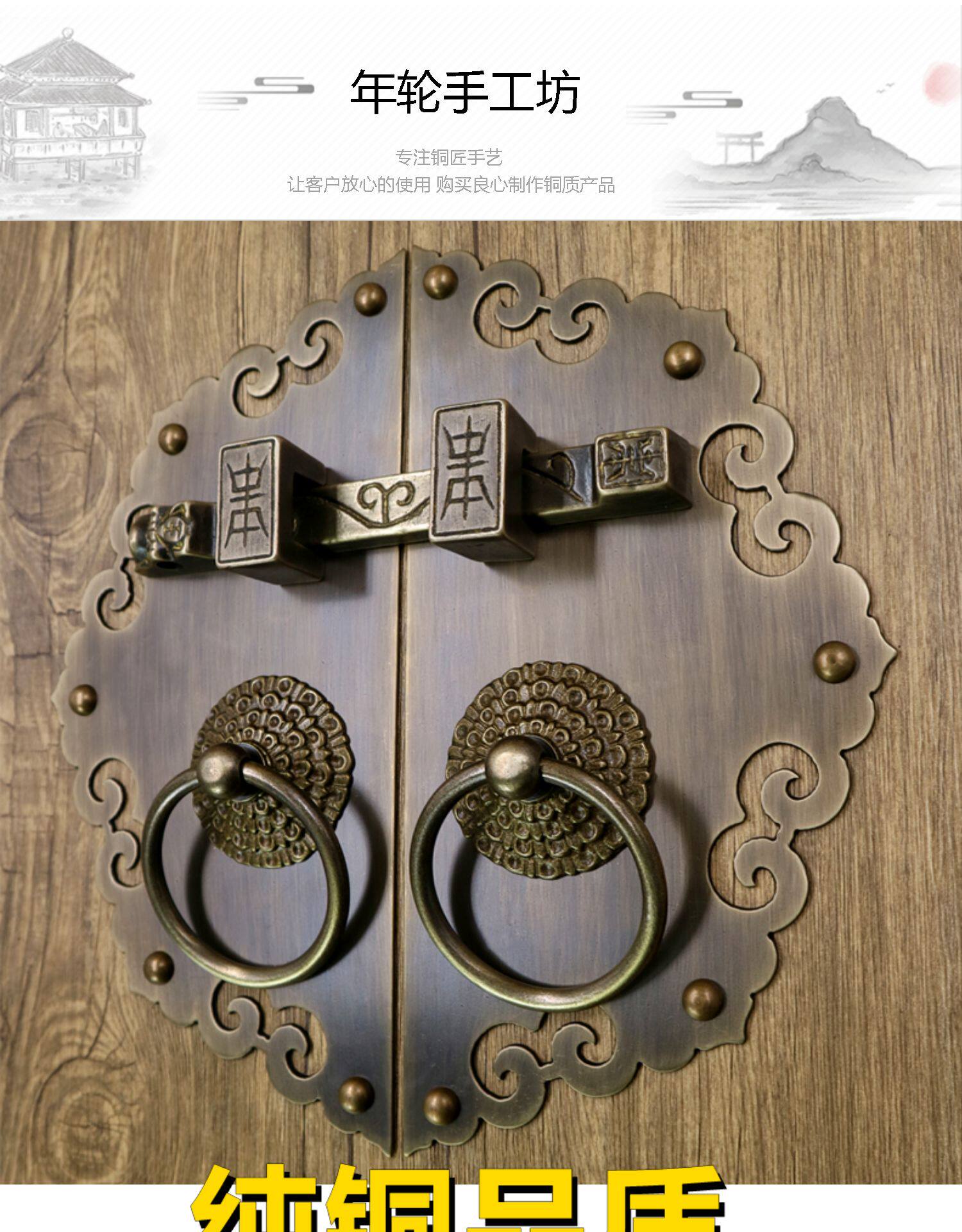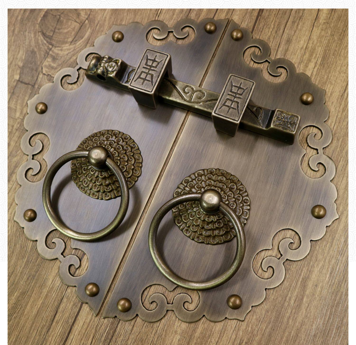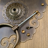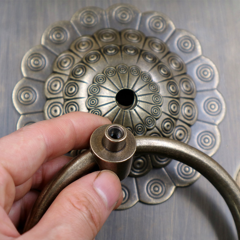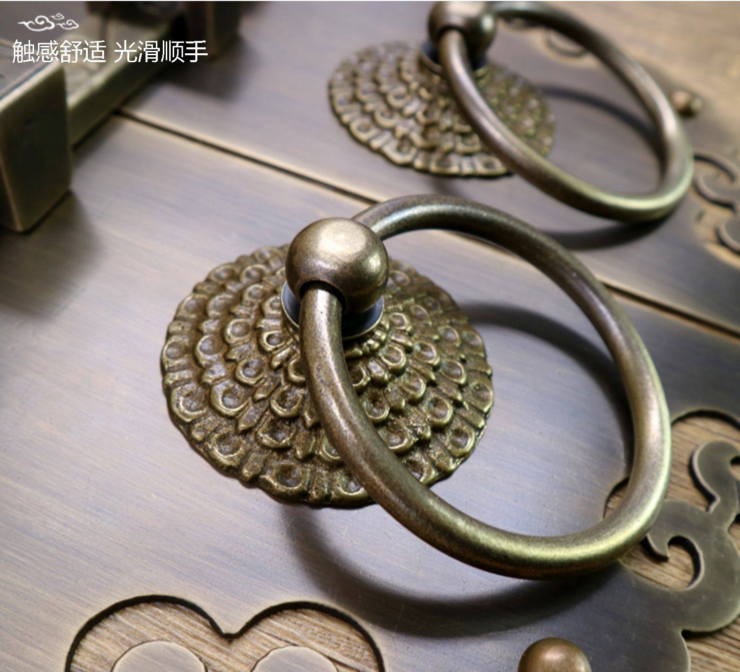 Античное кольцо медного дверного дверного кольца хорошо установлено с китайскими латунными деревянными дверными руками, ручной рукой и толстой чистой медной дверной эмболия, старые модные кольца