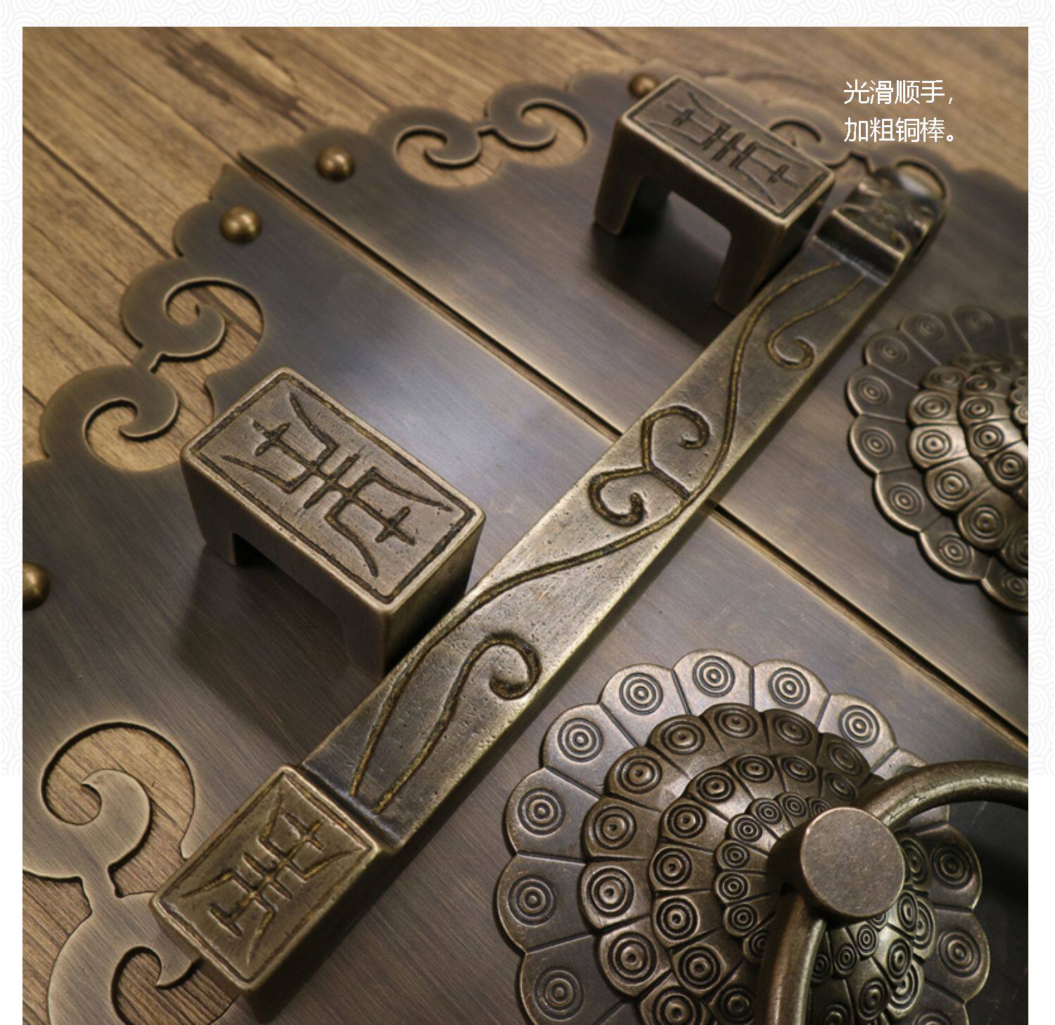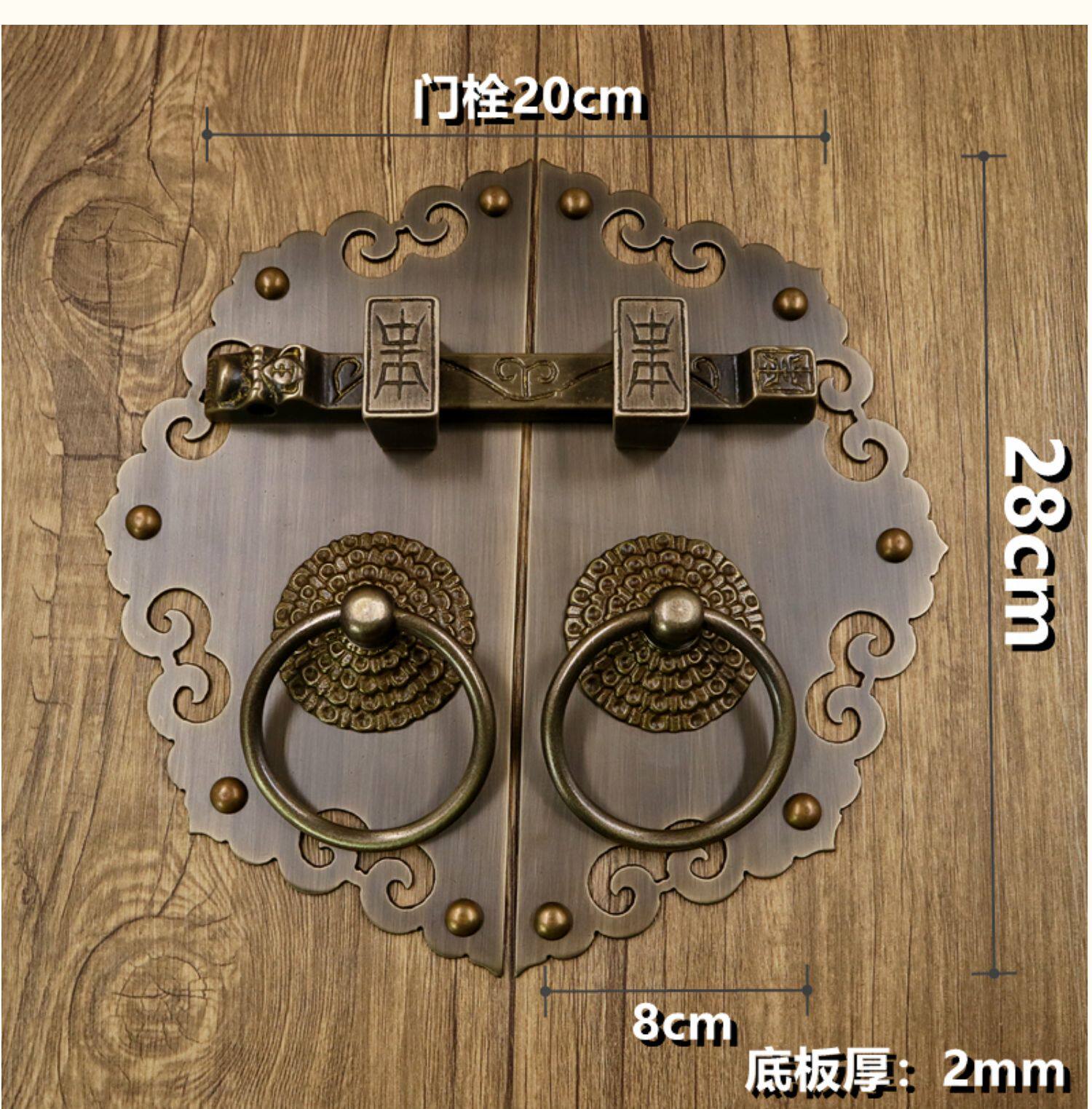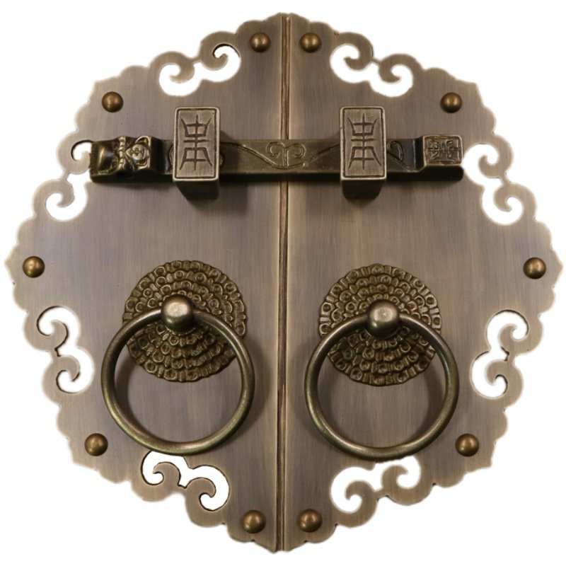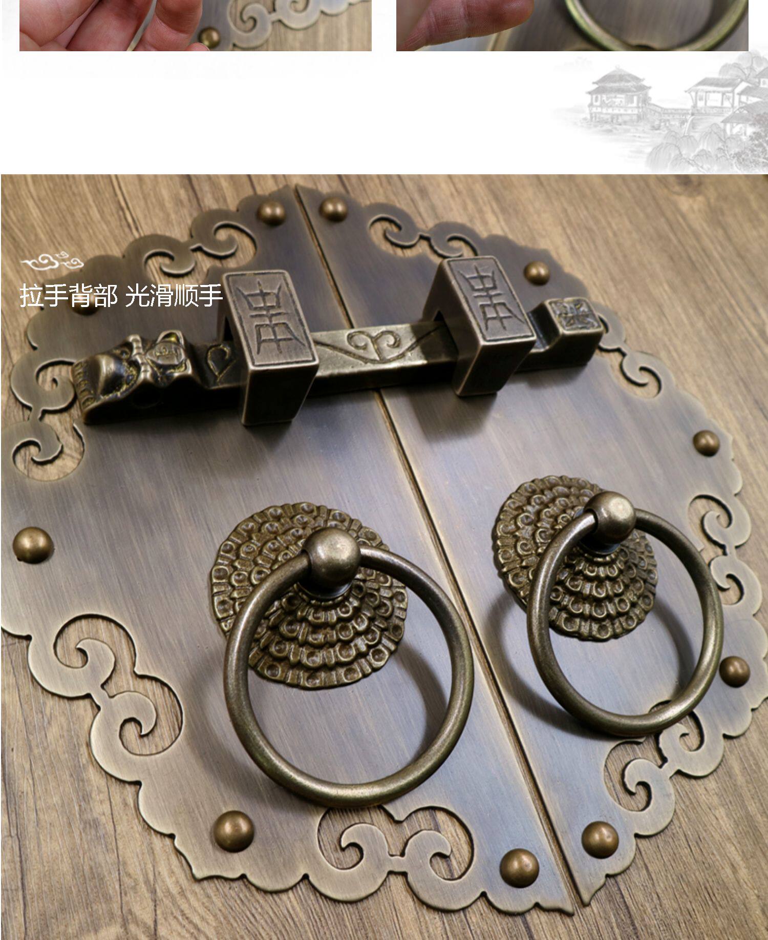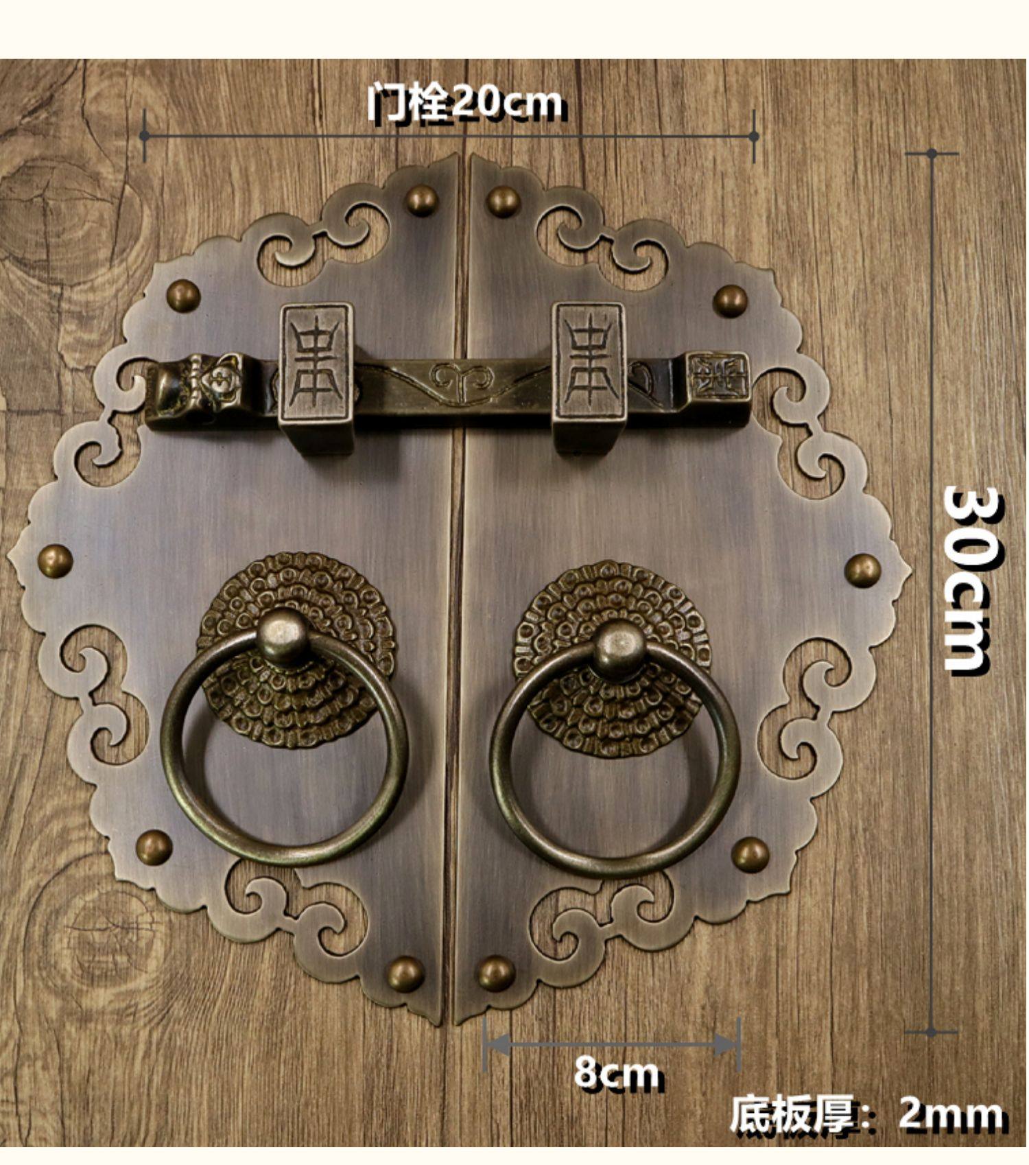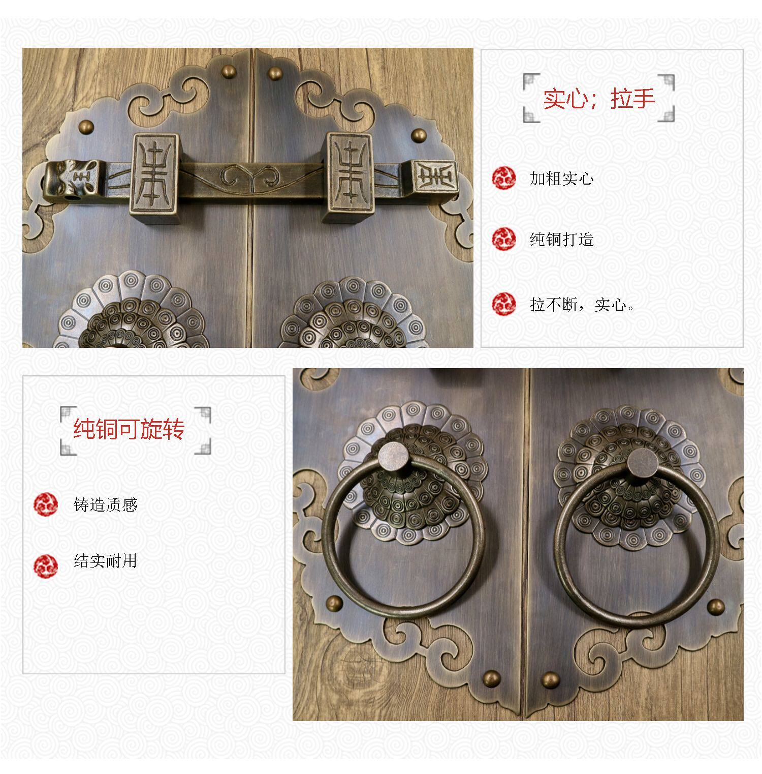 Античное кольцо медного дверного дверного кольца хорошо установлено с китайскими латунными деревянными дверными руками, ручной рукой и толстой чистой медной дверной эмболия, старые модные кольца