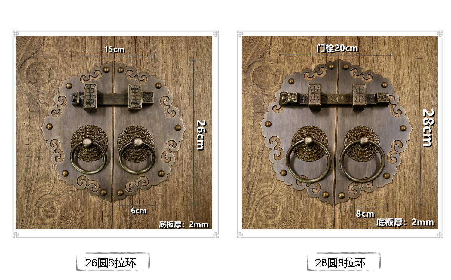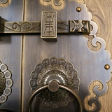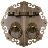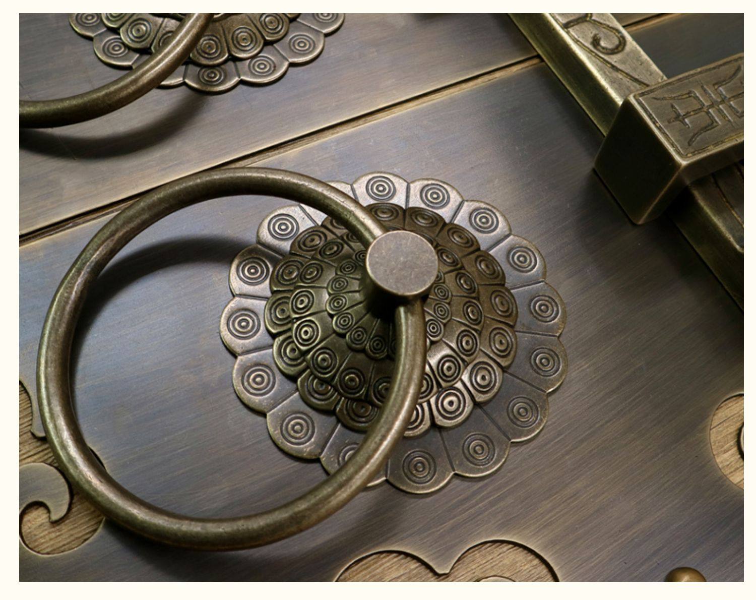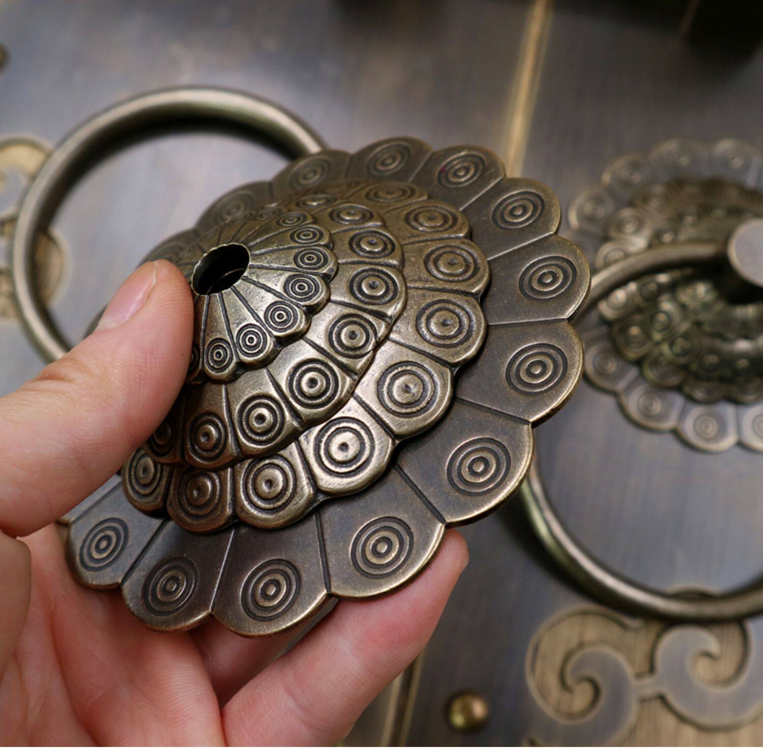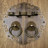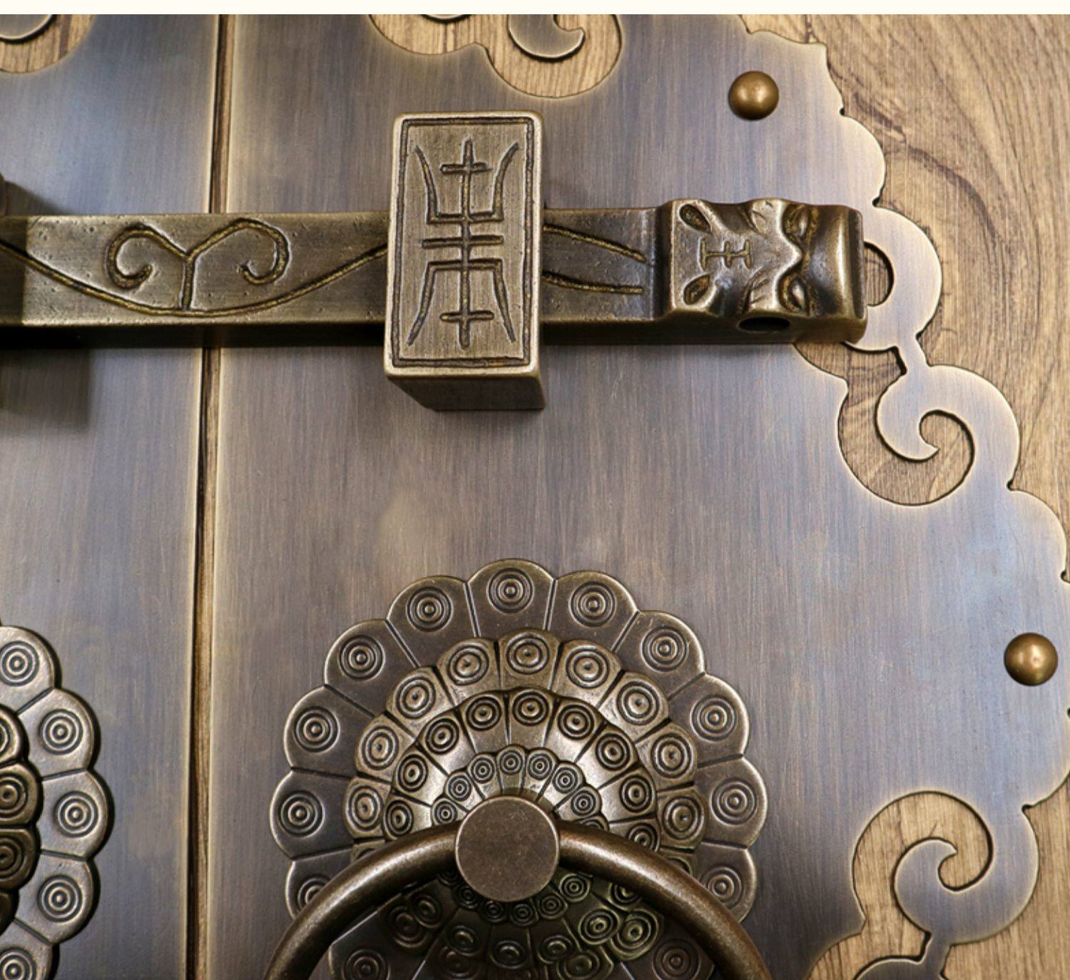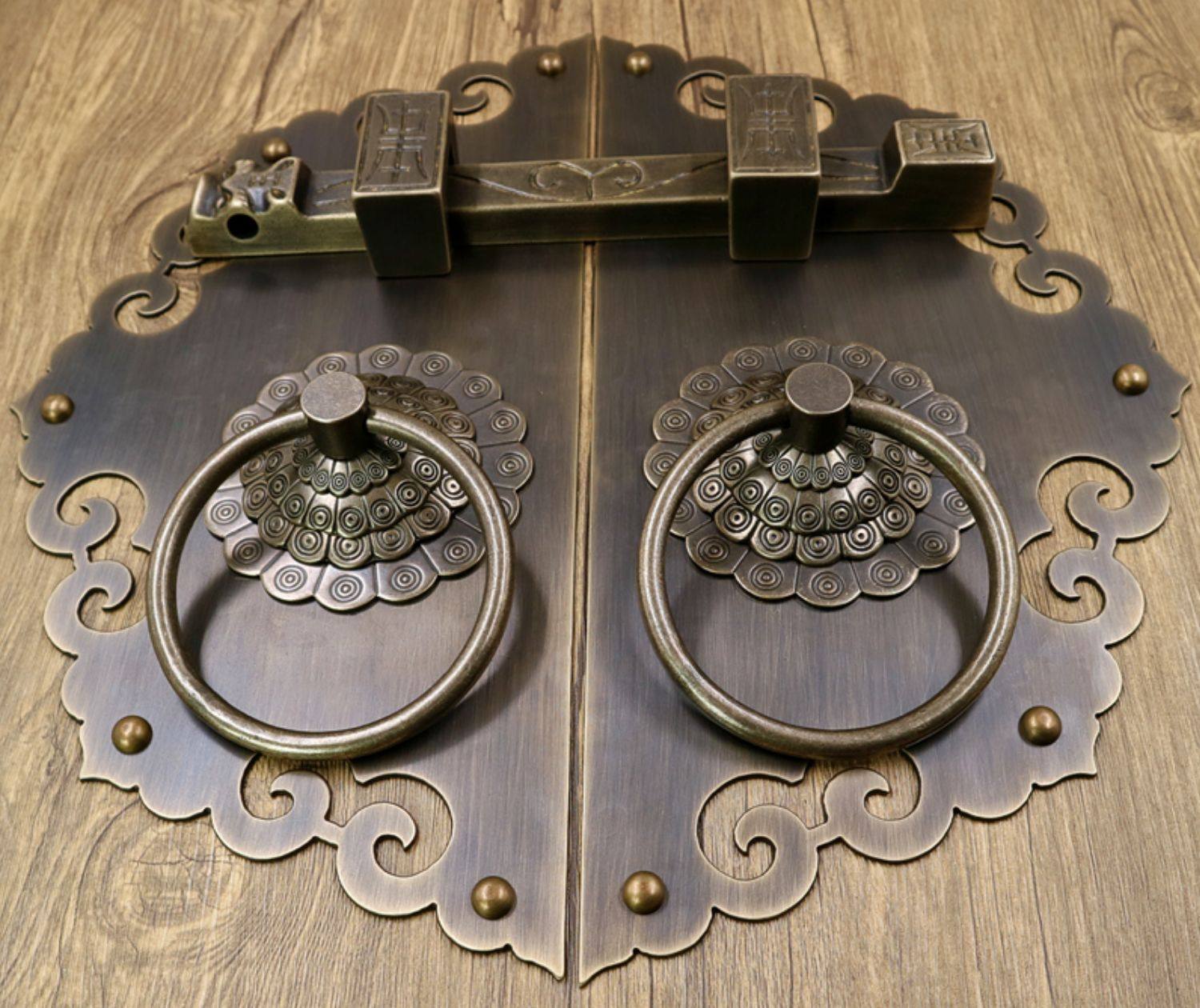 Античное кольцо медного дверного дверного кольца хорошо установлено с китайскими латунными деревянными дверными руками, ручной рукой и толстой чистой медной дверной эмболия, старые модные кольца