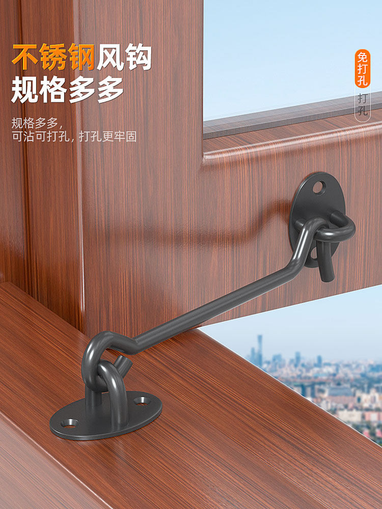 Утолщенная нержавеющая сталь ветровой крючок без отверстия Дверь болт Деревянный окно -замок для туалетных окон
