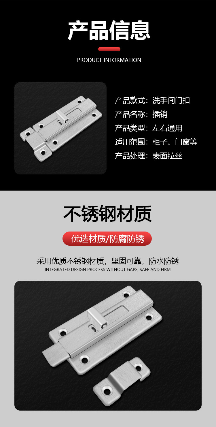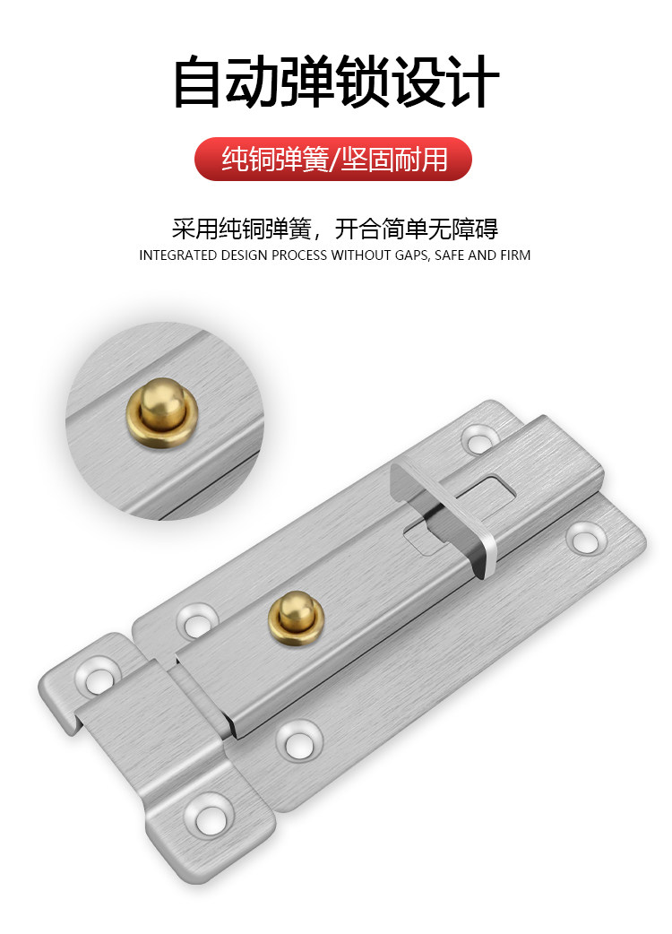 304 Утолщенная вставка из нержавеющей стали Дверь болт Деревянная дверь и оконная антитефта -пружина -в туалете, старый дверной замок Mingguo