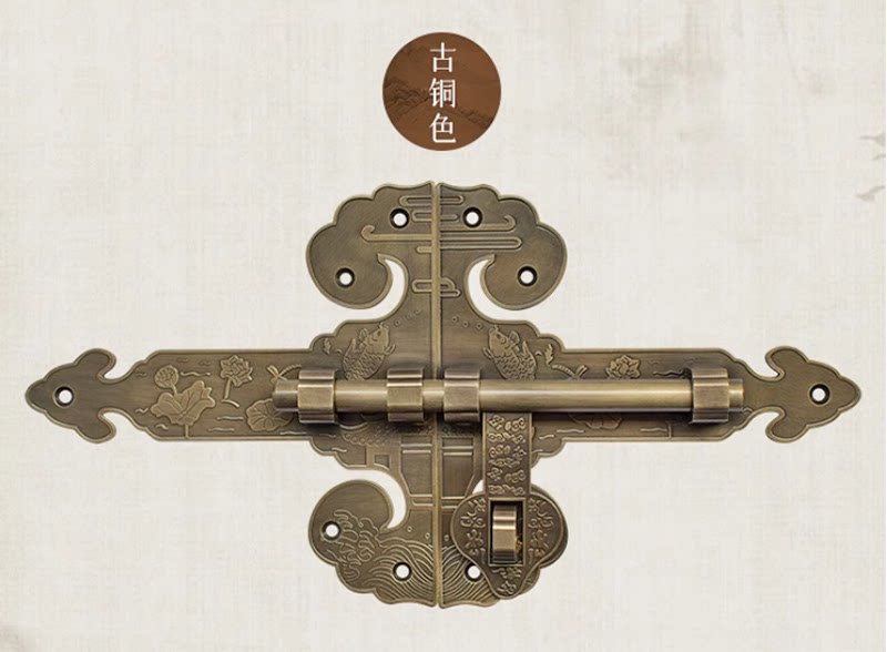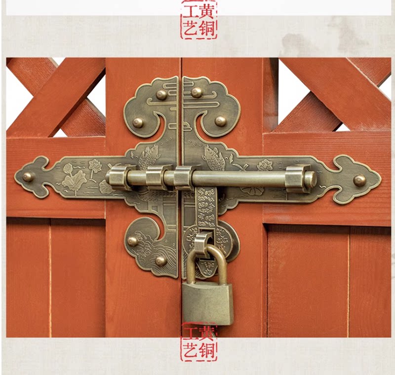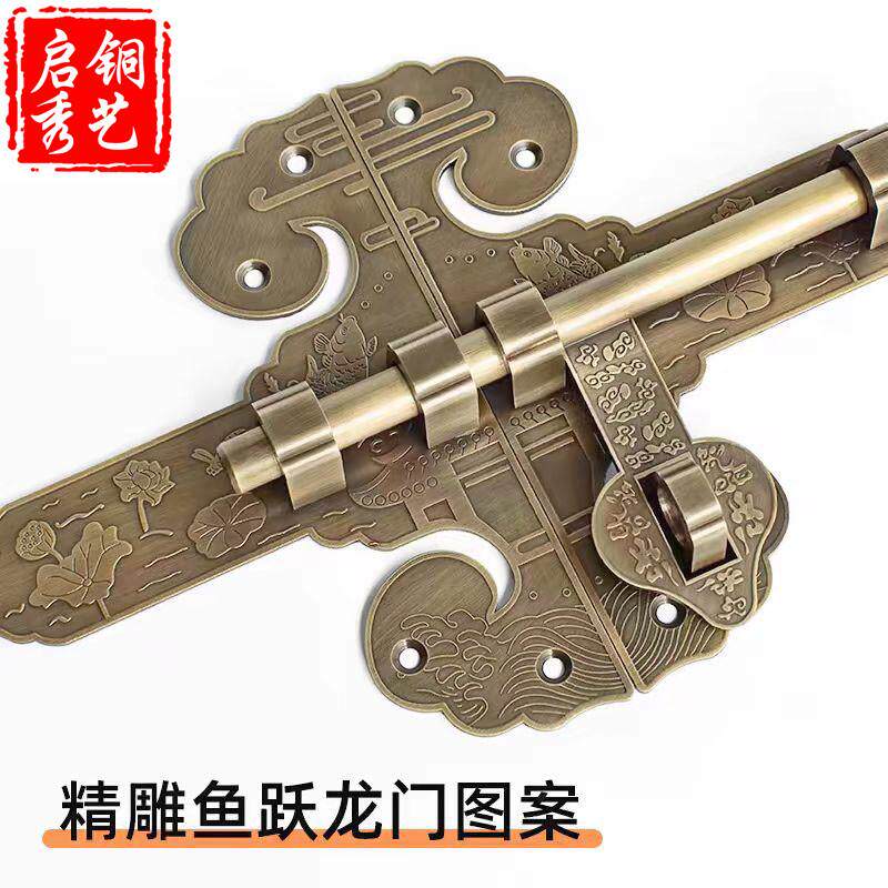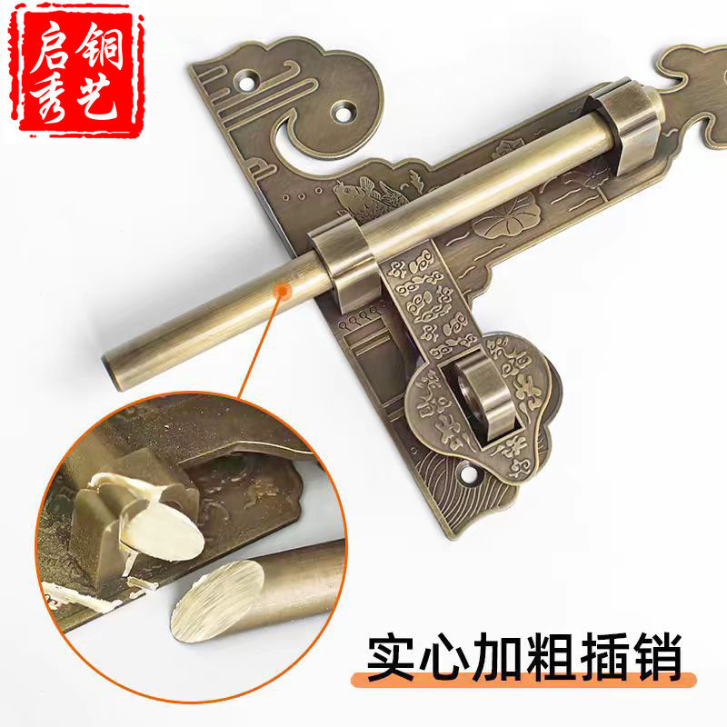Китайская чистая медная ретро -дверная защелка винтажные сельские деревянные дверные локоны сад двор защелка для дверей антикварная пряжка медная дверная болт